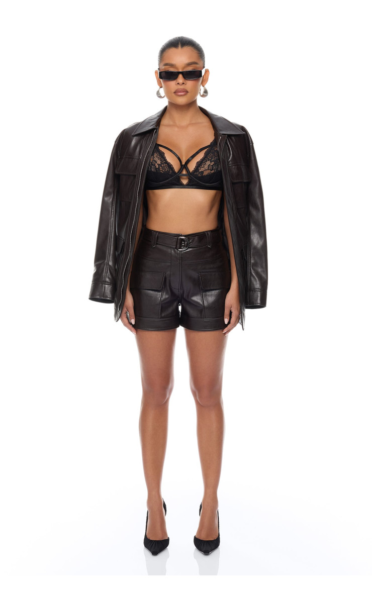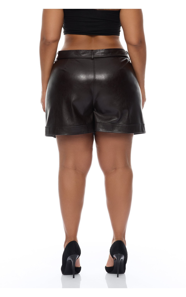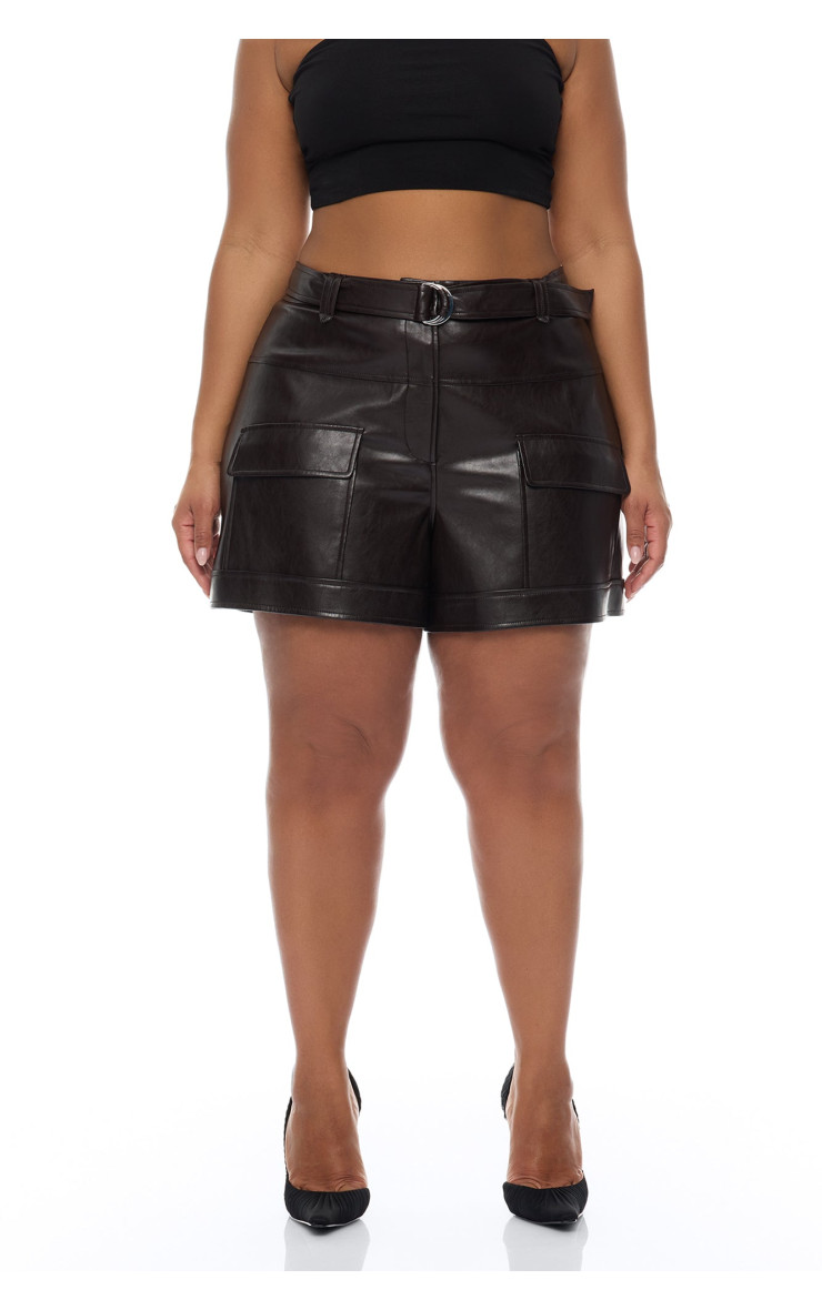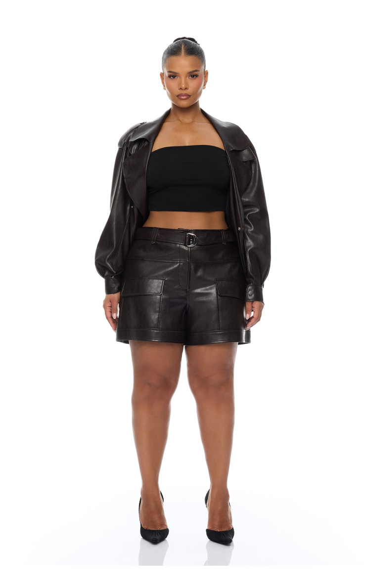 Карго шорти "Зая" з еко-шкіри - Шоколад