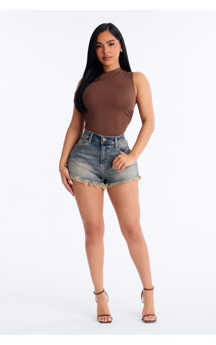 Еластичні денімні шорти "Літнє згасання" з відрізним краєм - Вінтажний відтінок