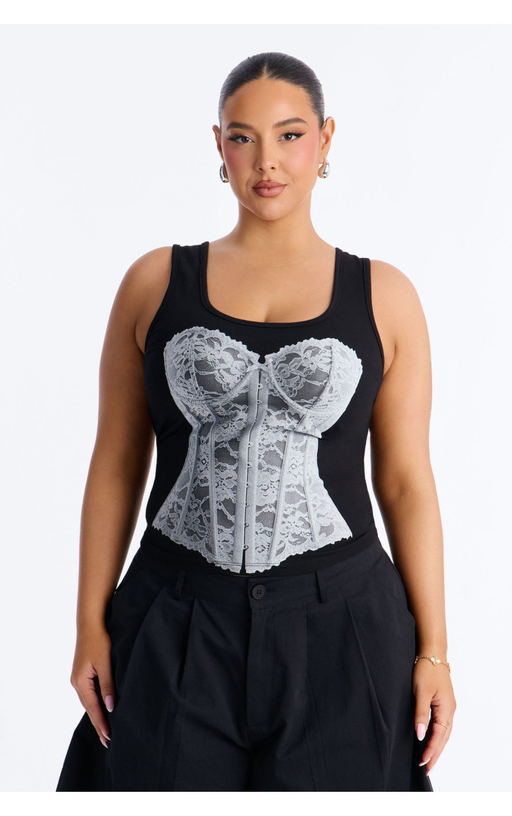 Цей ефектний топ "Lace Corset" з графічним принтом поєднує в собі елегантність та сучасний стиль. Його унікальний дизайн з елементами корсета додасть вашому образу вишуканості. Виготовлений з комфортної тканини, він чудово сидить по фігурі. Створіть незабутній образ з цим неповторним топом.