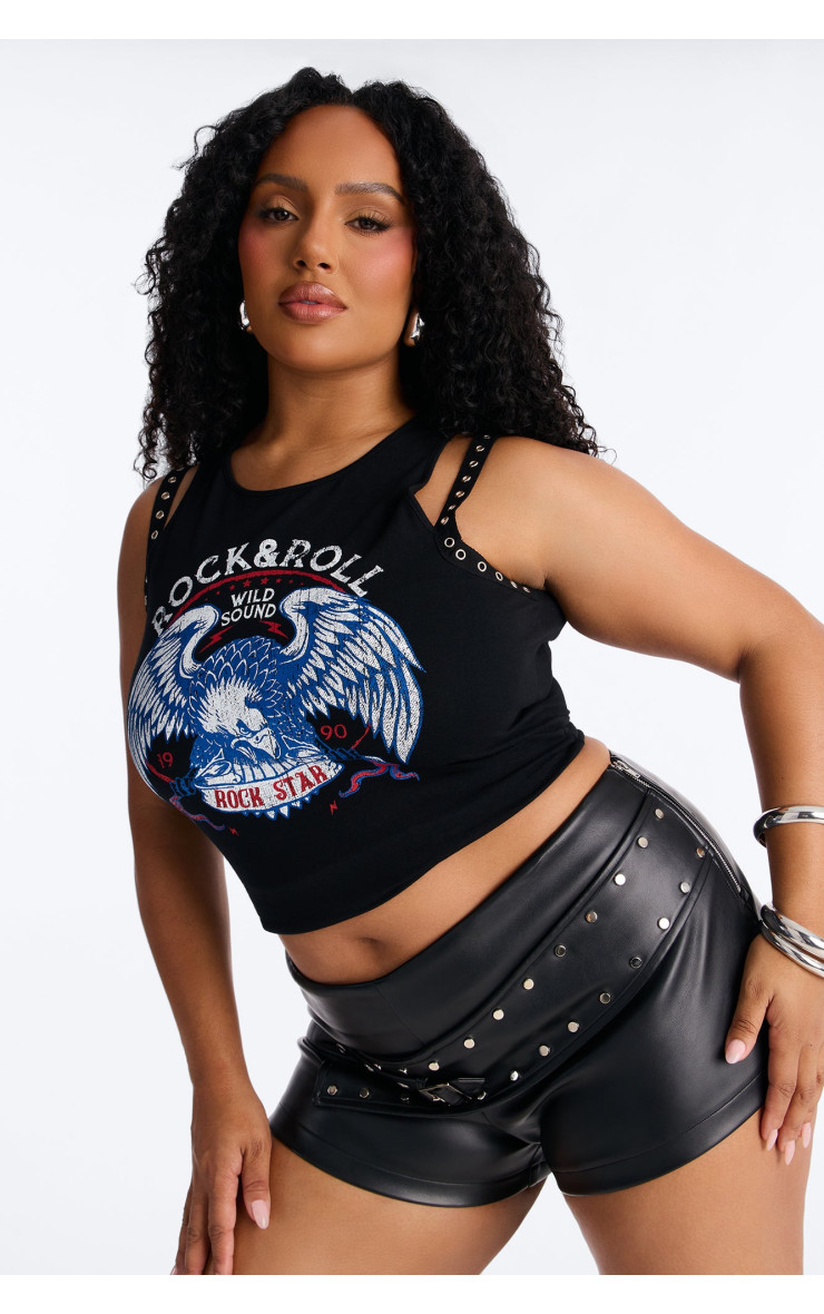 Відчуйте себе справжньою рок-зіркою з цим ефектним топом. Його зухвалий дизайн та комфортний крій ідеально підходять для створення незабутніх образів. Виготовлений з м'якої тканини, він забезпечить вам комфорт та впевненість. Додайте драйву до свого стилю!