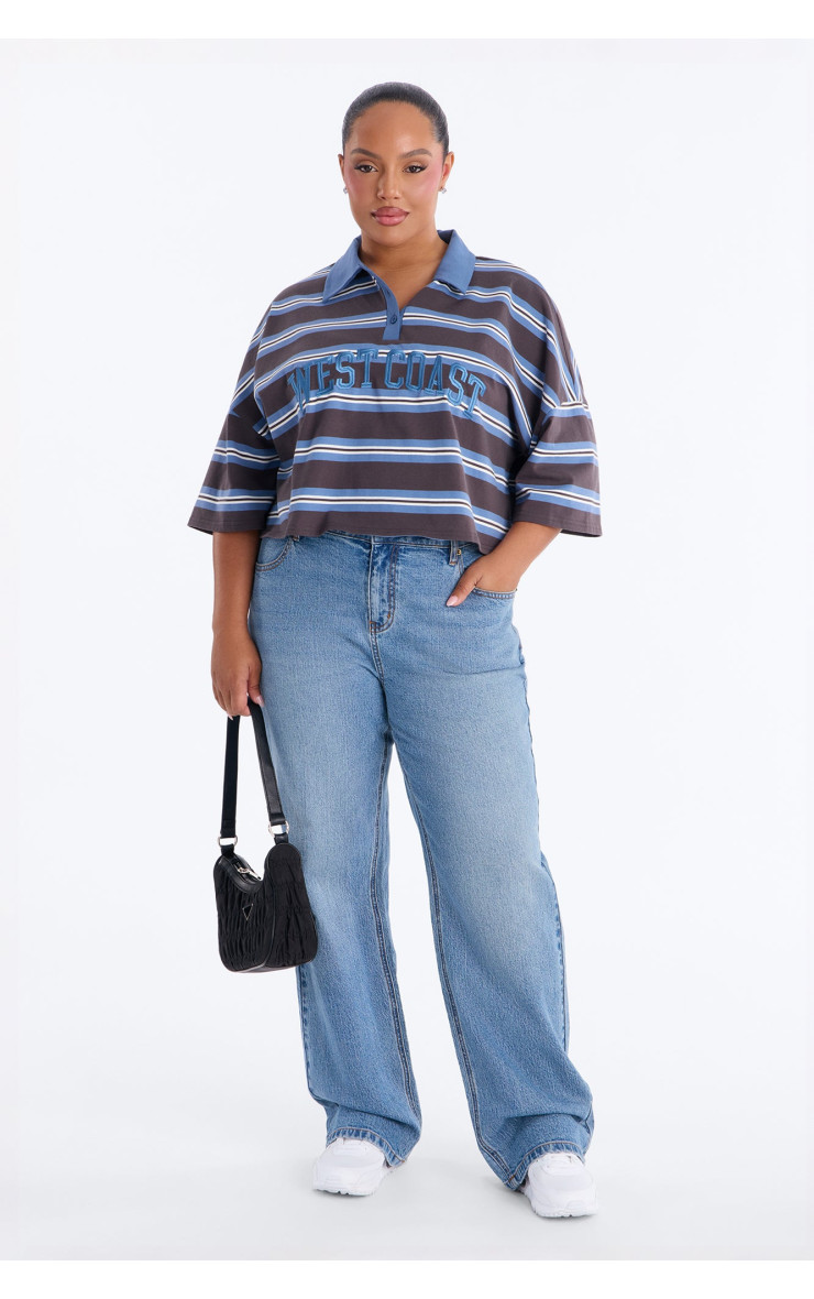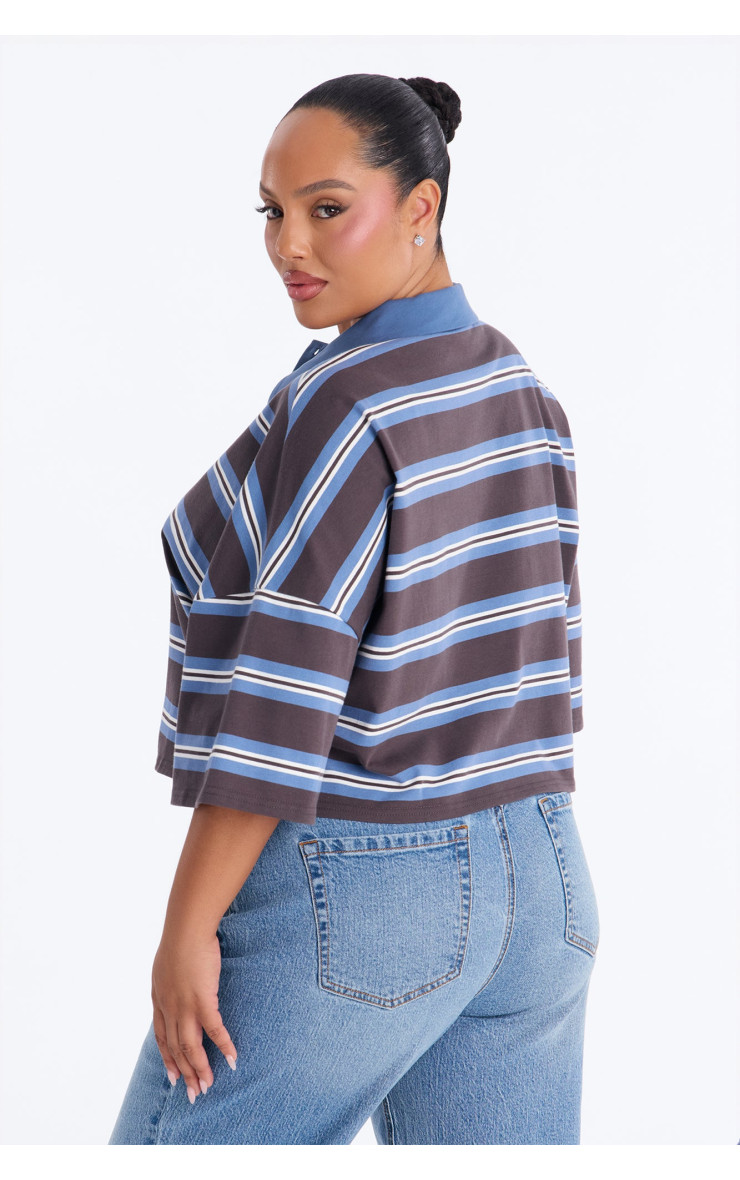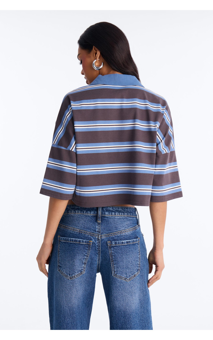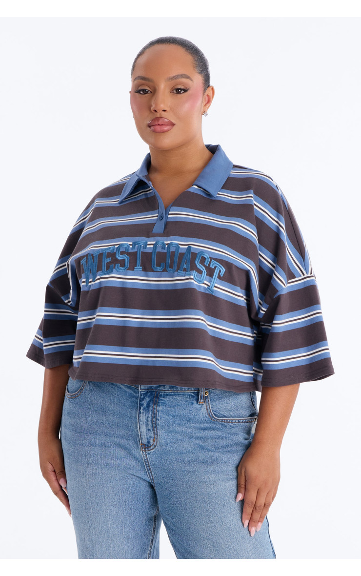 Цей укорочений топ-поло "West Coast" у смужку — це втілення стилю та комфорту. Його сучасний дизайн та зручний крій роблять його ідеальним для створення модних образів. Виготовлений з приємної на дотик тканини, він забезпечить вам комфорт та впевненість. Додайте нотку спортивного шику до свого гардеробу!