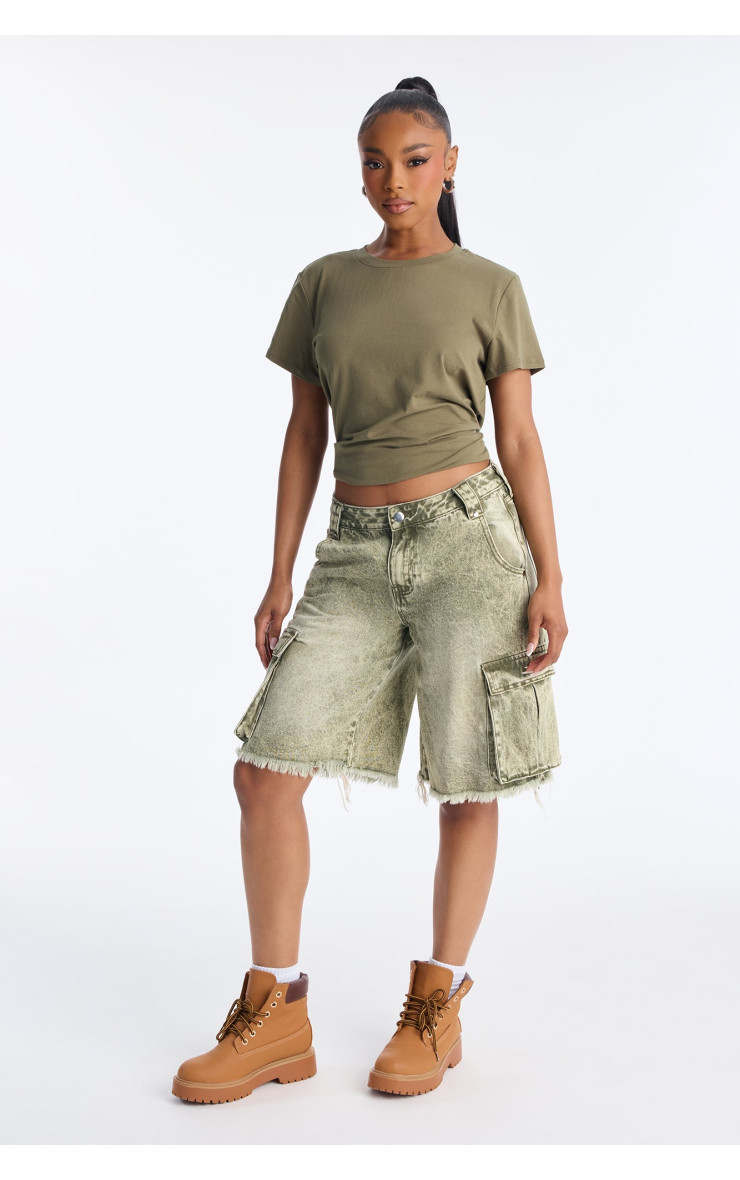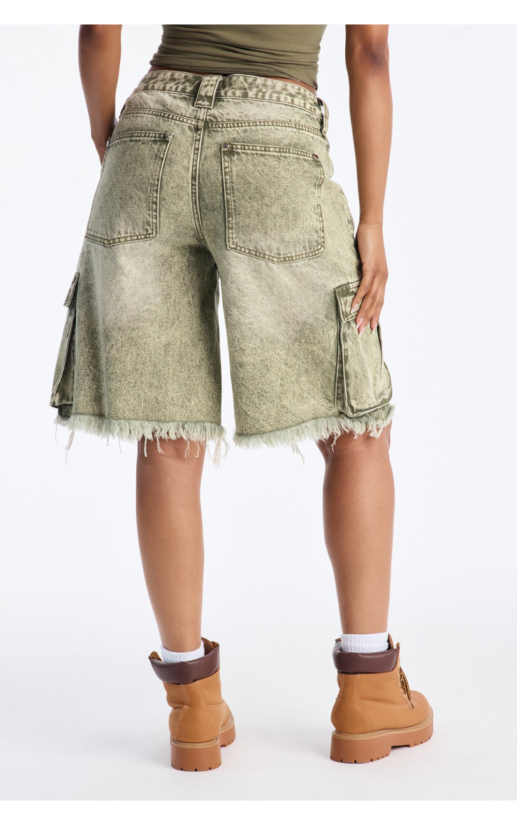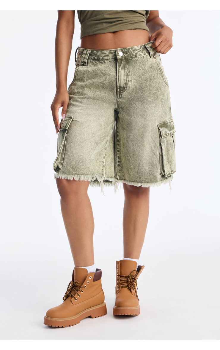 Карго денімні шорти "Остін" із середньою посадкою - Оливковий
