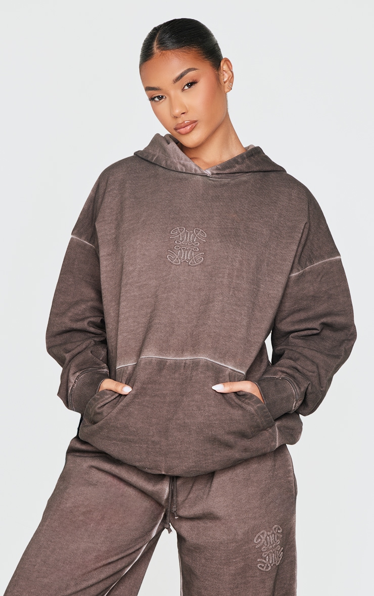 Коричнева толстовка великого розміру PRETTYLITTLETHING з тисненням