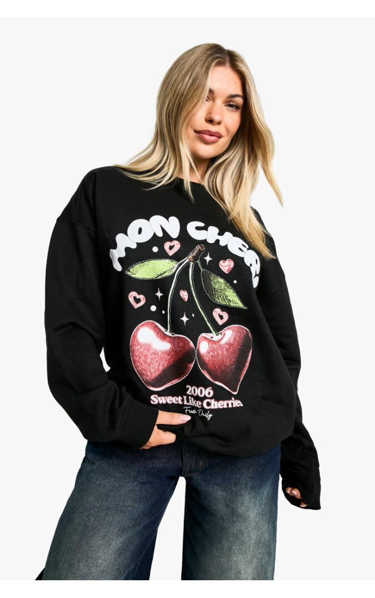Світшот з круглим вирізом і надписом Mon Cheri