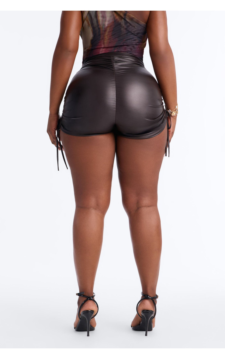 Мікро-шорти "Фінессе" з еко-шкіри та драпіруванням - Шоколад