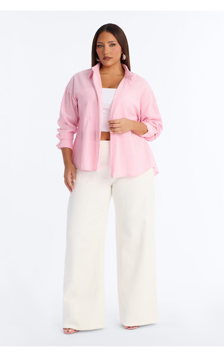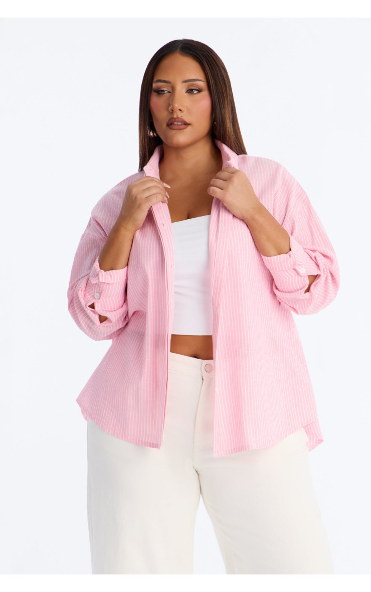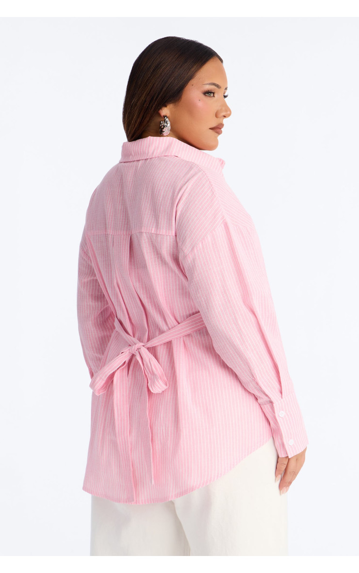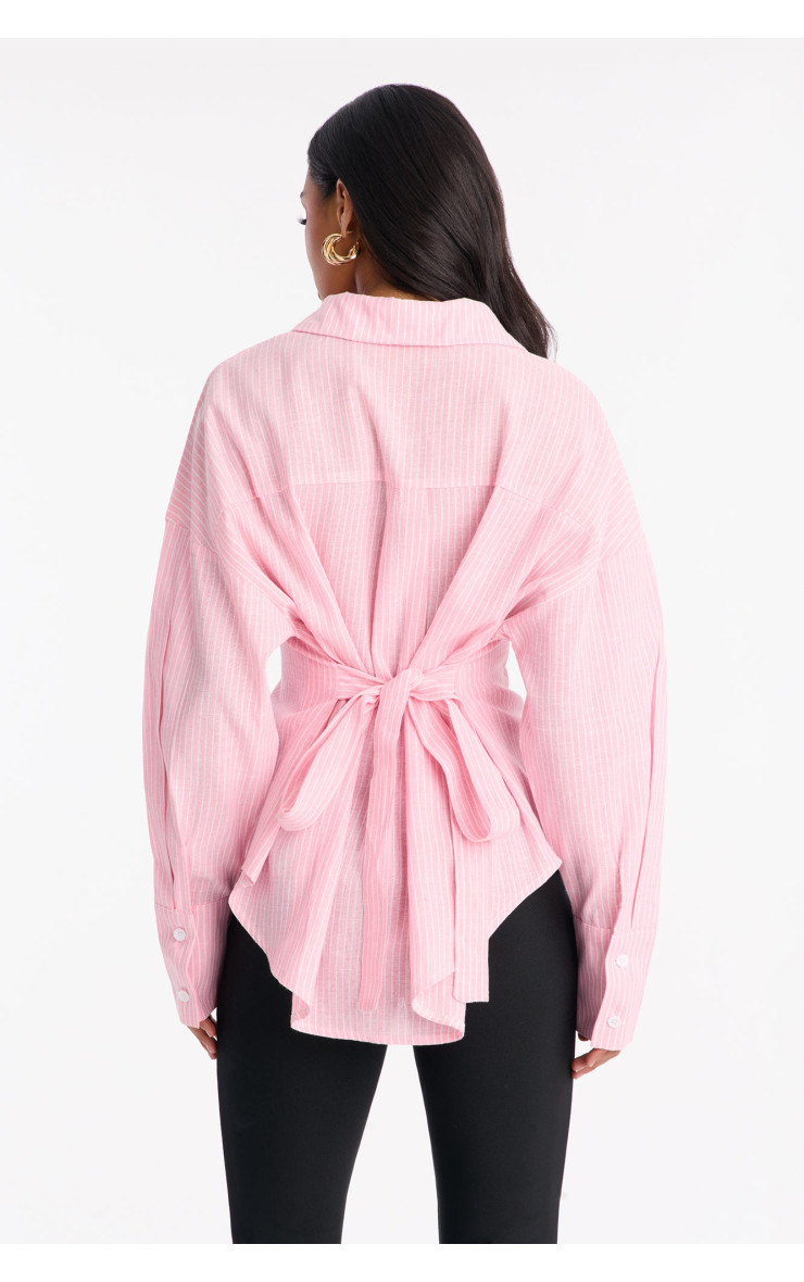 Оверсайз лляна сорочка "Kaia" із зав'язками - Рожевий/Комбі