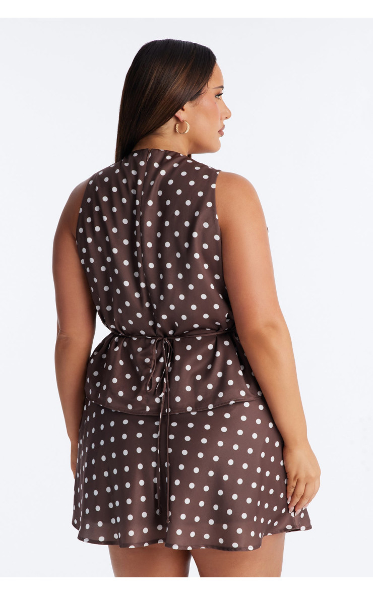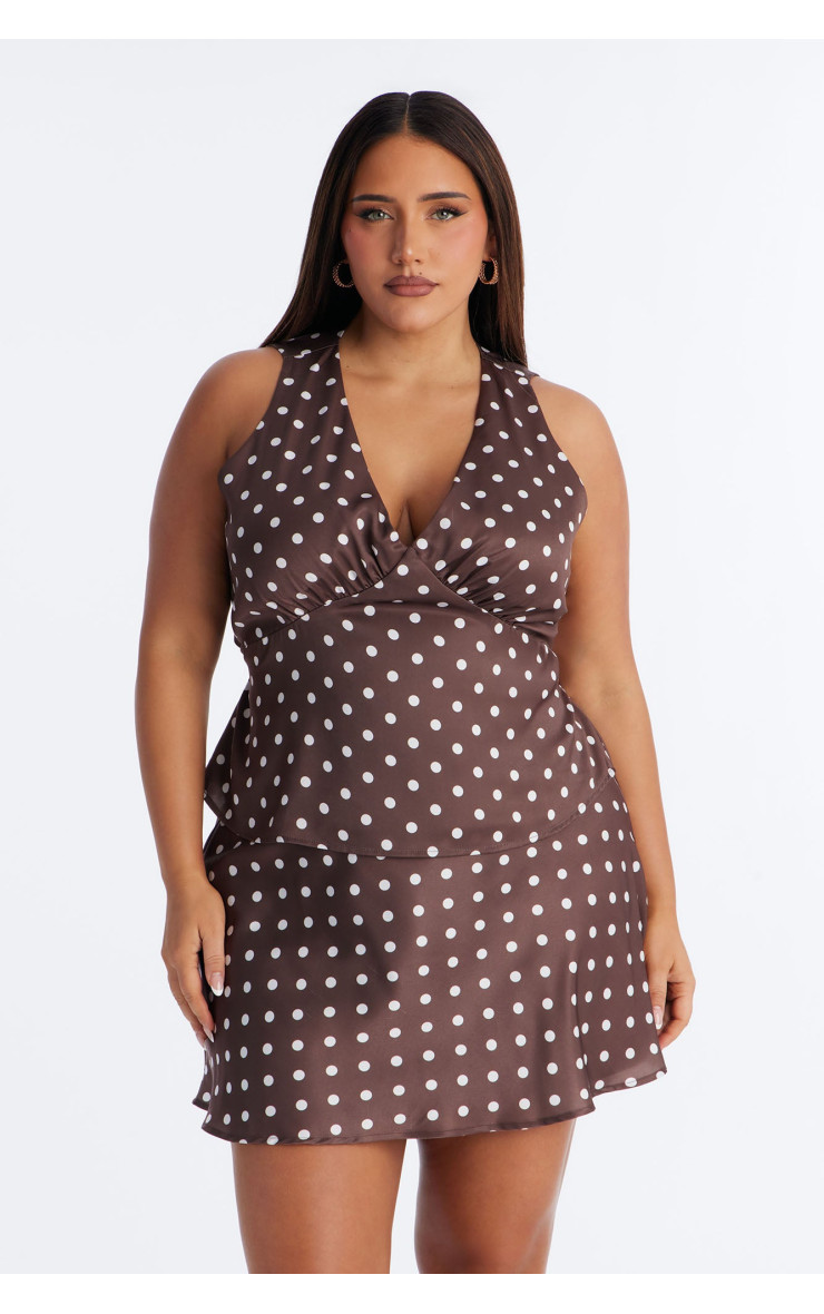 Атласний топ "Satin Daydream" з горошком та поясом - Коричневий/Комбі