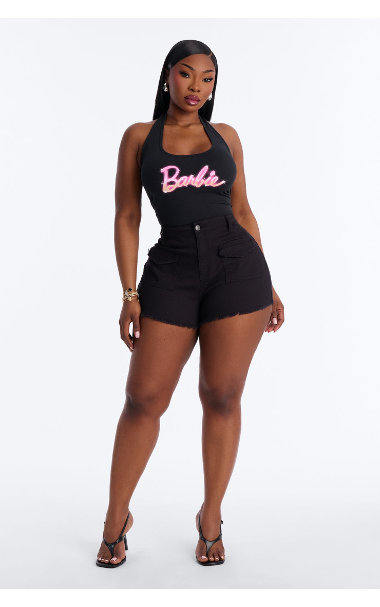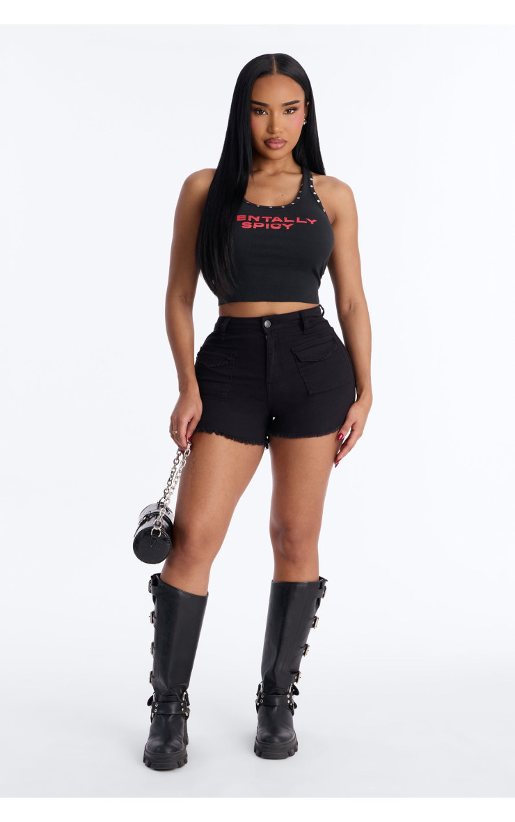 Відчуйте максимальний комфорт та стиль з цими еластичними денімними шортами "Клич". Відрізний край та приємний на дотик матеріал забезпечують ідеальну посадку. Класичний чорний колір додає універсальності.