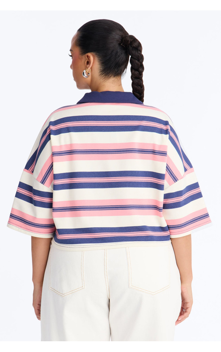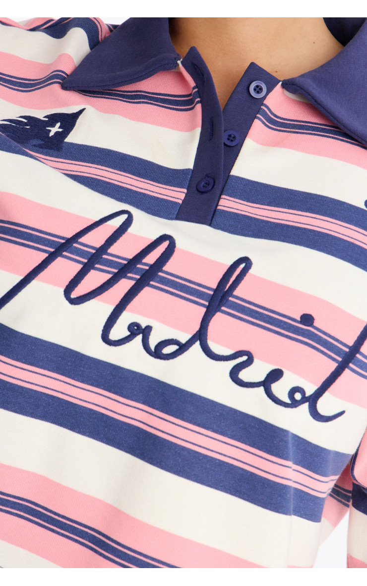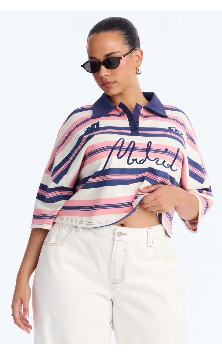Цей укорочений топ-поло "Madrid" у смужку — це втілення стилю та елегантності. Його сучасний дизайн та комфортний крій роблять його ідеальним для створення модних образів. Виготовлений з приємної на дотик тканини, він забезпечить вам комфорт та впевненість. Додайте нотку спортивного шику до свого гардеробу!