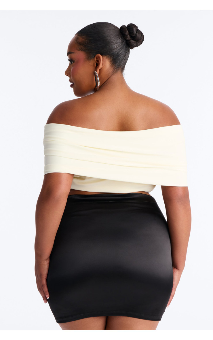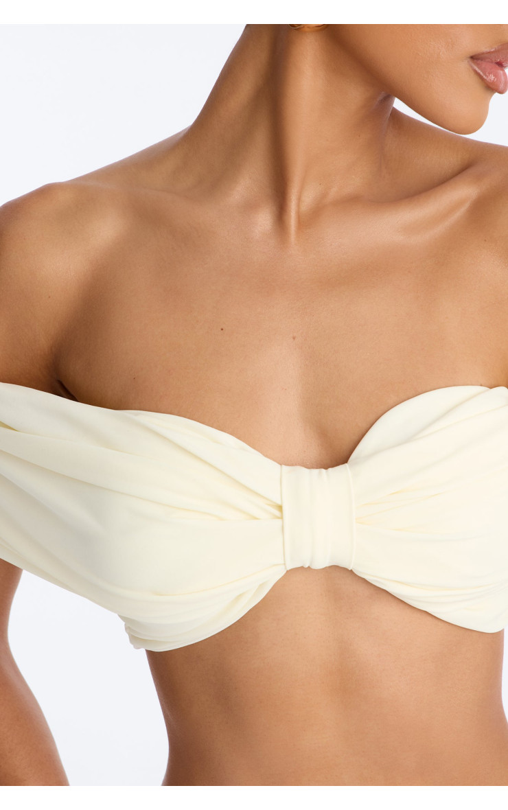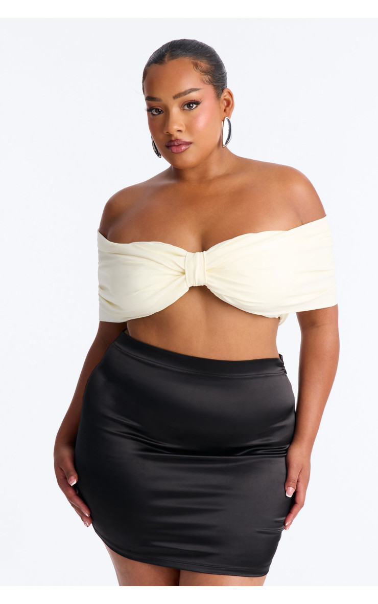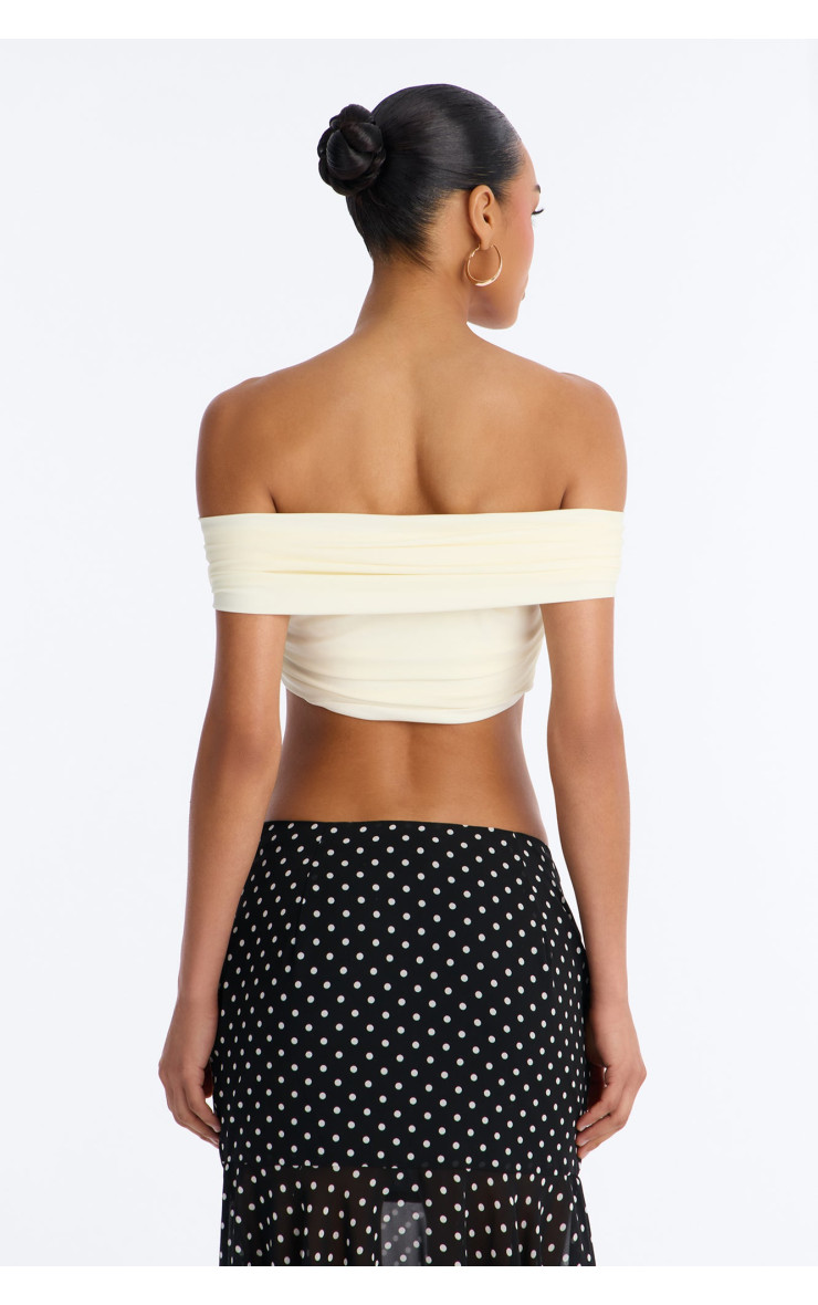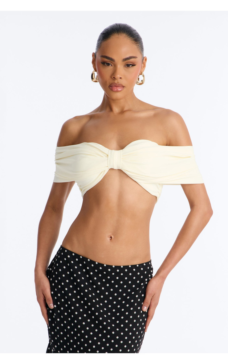 Кроп-топ "Nina" з відкритою лінією плечей та драпіруванням - Кремовий
