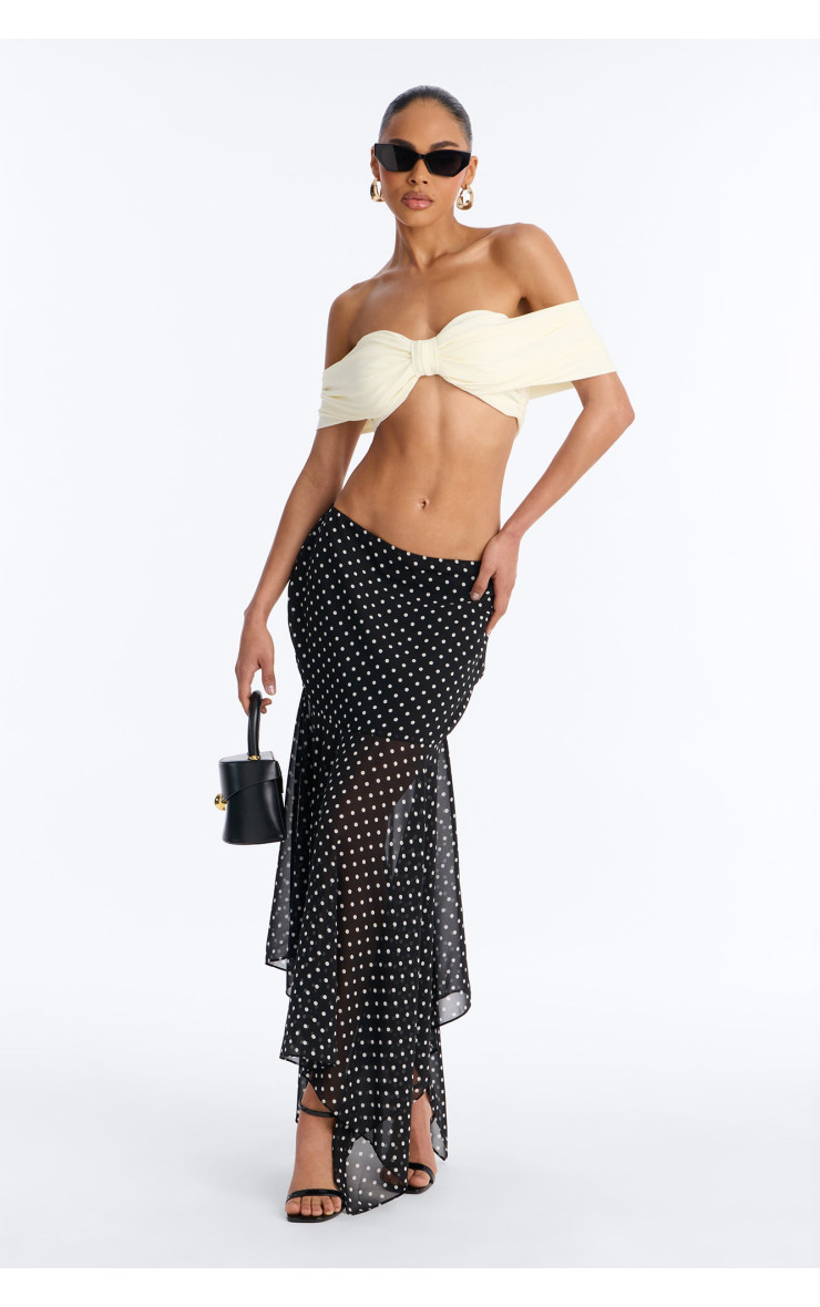 Цей кроп-топ "Nina" — справжній тренд сезону! Його дизайн з відкритою лінією плечей та ефектним драпіруванням робить його надзвичайно привабливим. Ідеально підходить для створення модних та сміливих образів.
