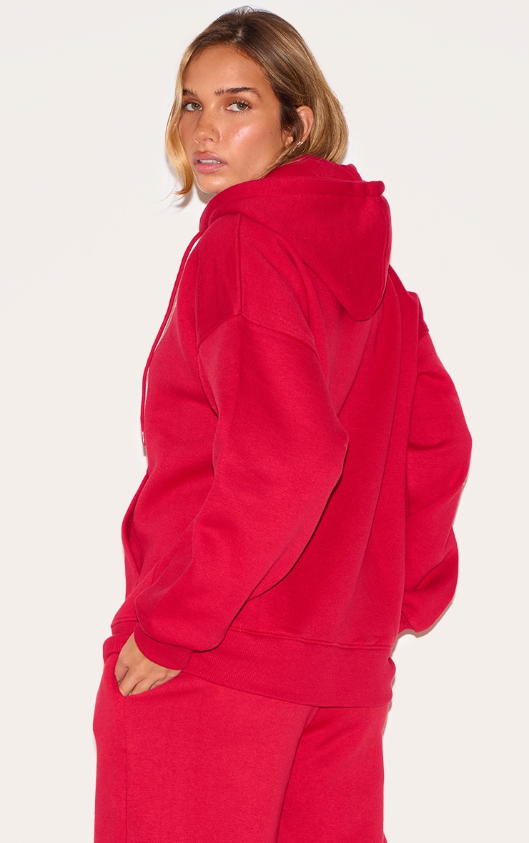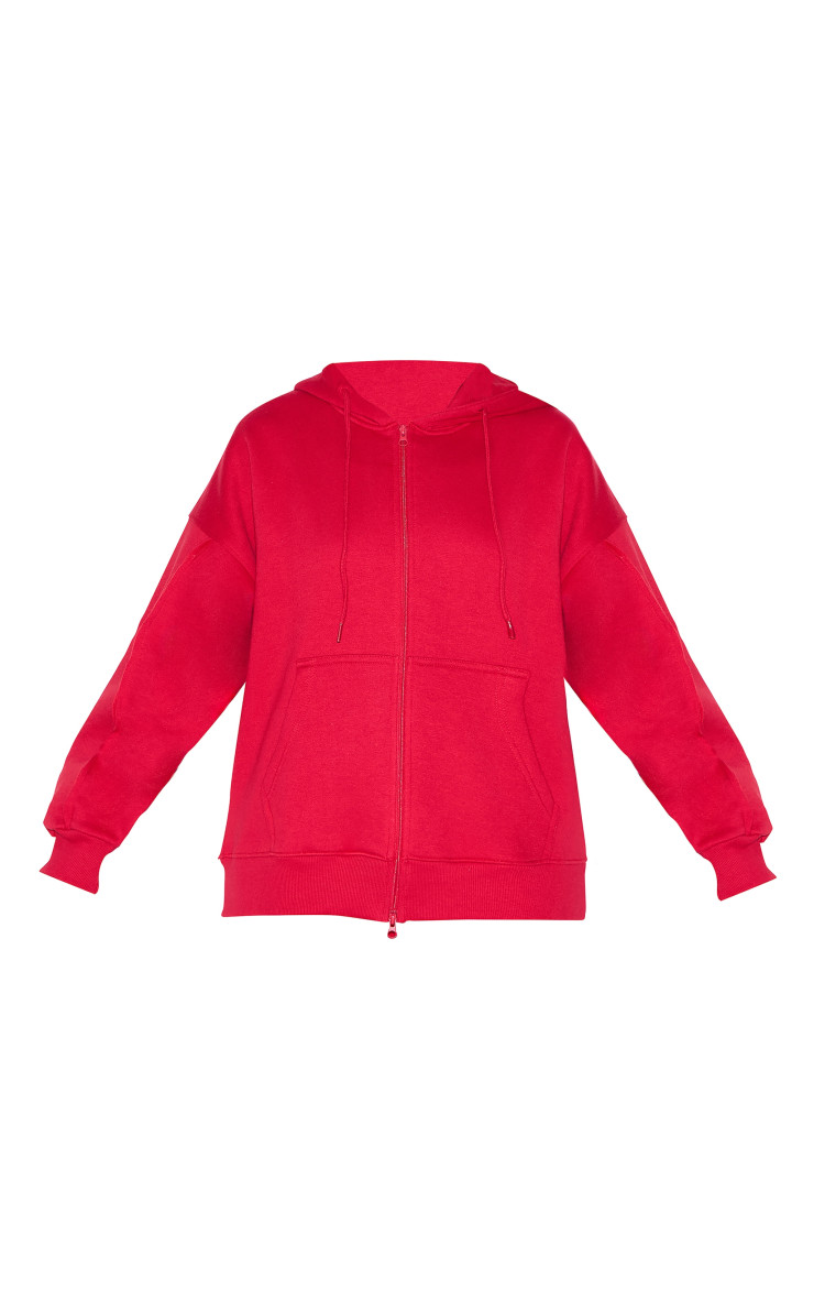 Червоний негабаритний блискавка через балахон деталей шва