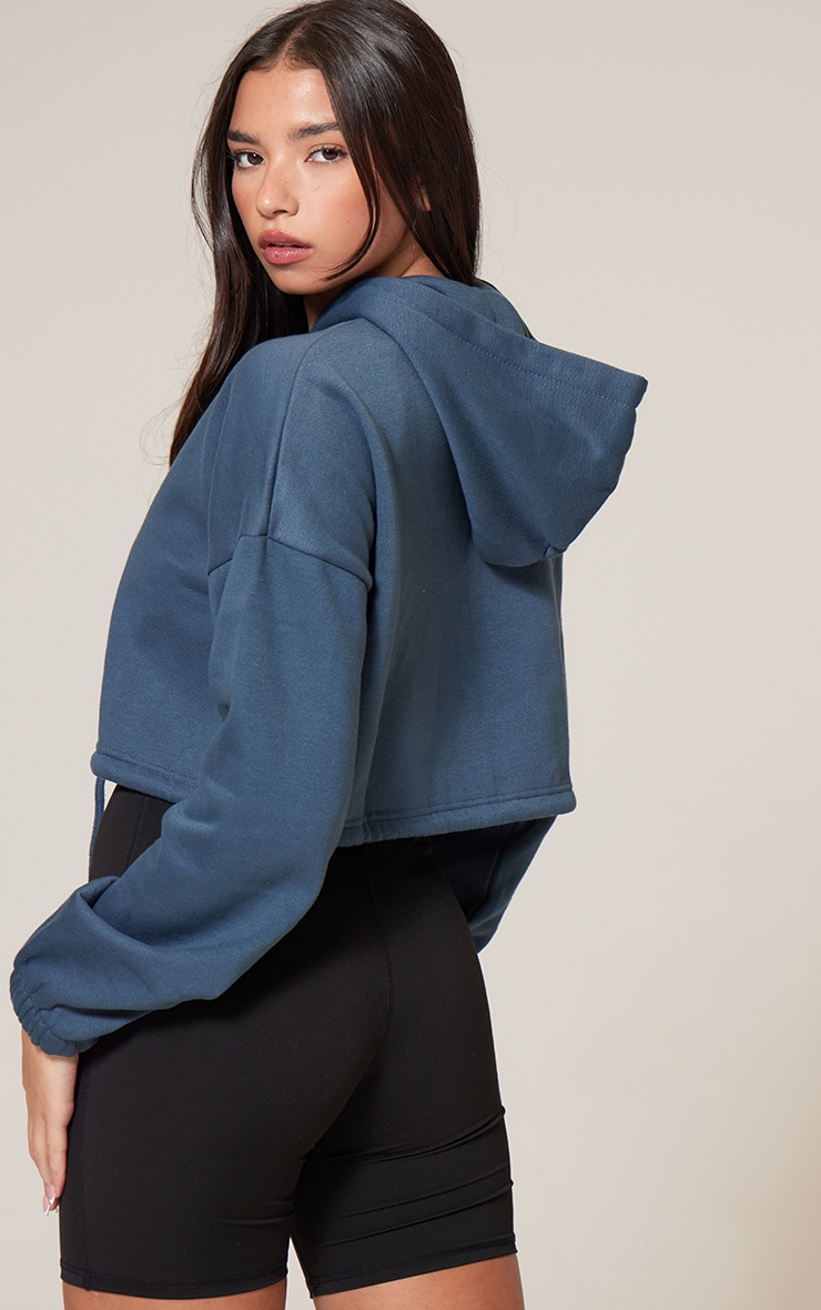 Чорнильно-синій укорочений худі на талії та блискавці