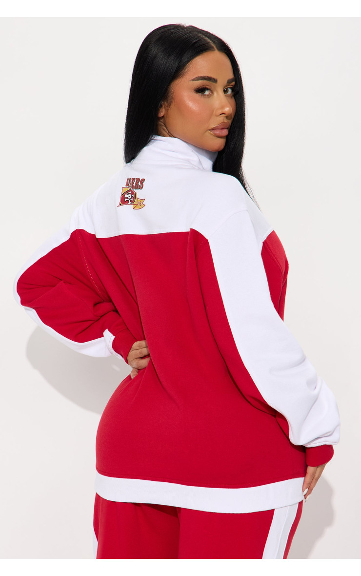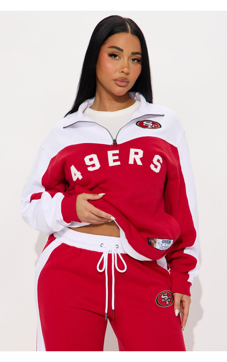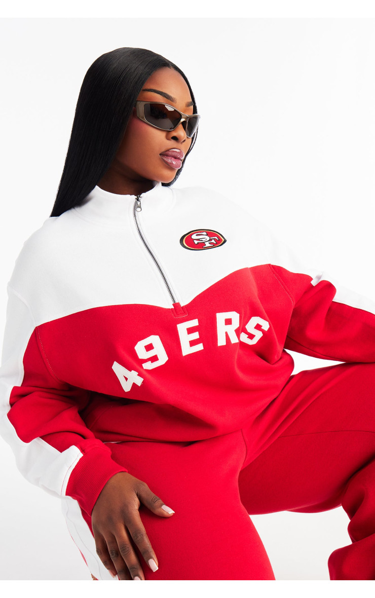 Підтримайте команду "49ers" з цим стильним флісовим світшотом. Виготовлений з м'якого флісу, він забезпечить вам тепло та комфорт. Зручна напівблискавка дозволяє регулювати комфорт, а сучасний дизайн робить його чудовим доповненням до вашого спортивного гардеробу. Це ідеальний вибір для справжніх шанувальників футболу.