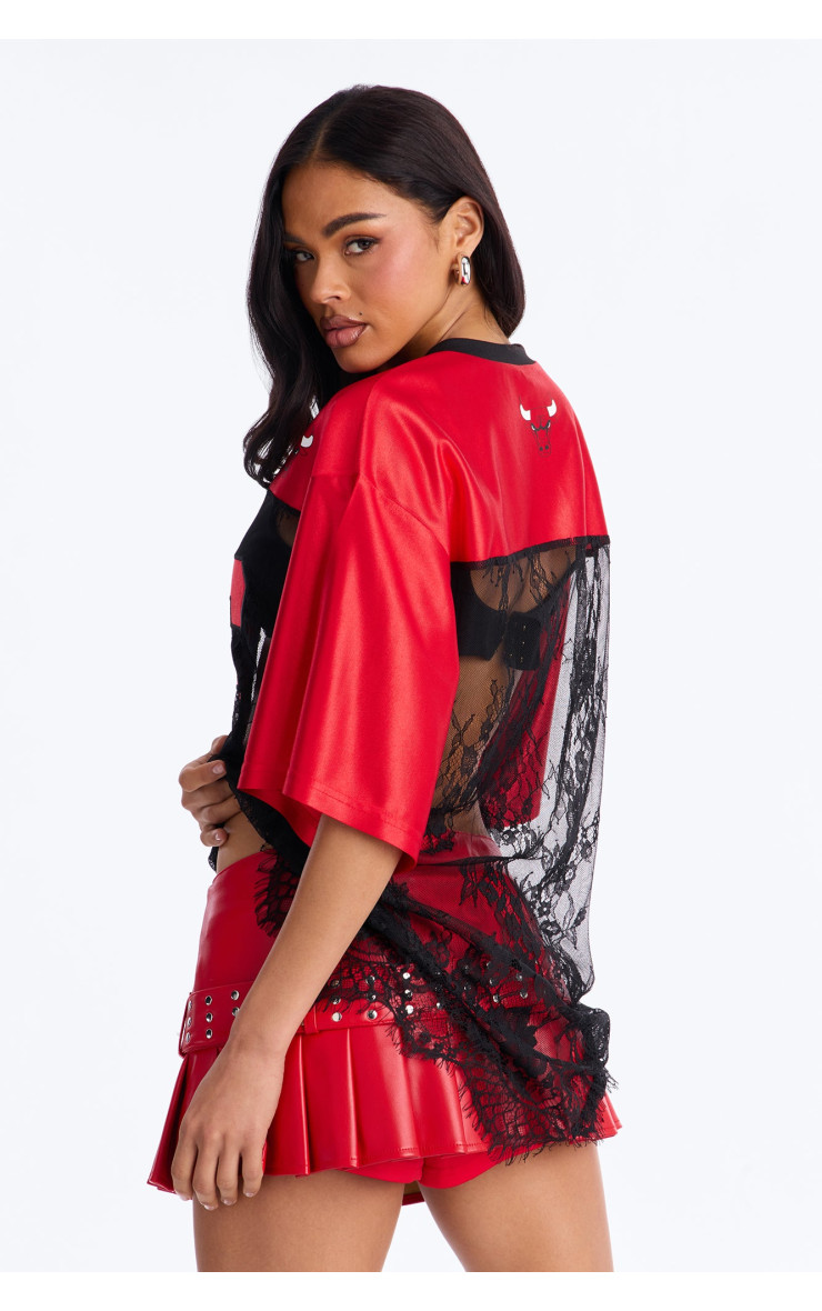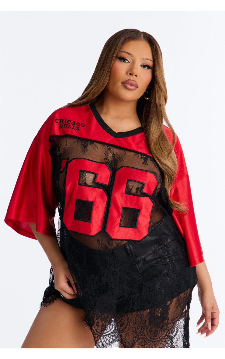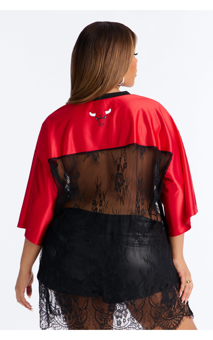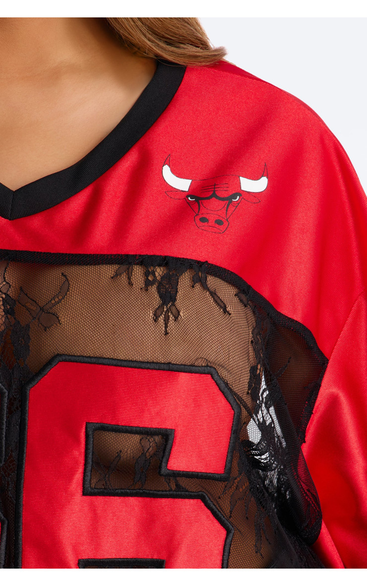 Віддайте шану легенді баскетболу з цим топ "NBA Chicago Bulls", прикрашеним вишуканим мереживом. Цей топ поєднує спортивний стиль з елегантністю, створюючи унікальний образ. Комфортна тканина та стильний дизайн роблять його ідеальним вибором для будь-якого випадку. Додайте нотку шику до свого гардеробу!