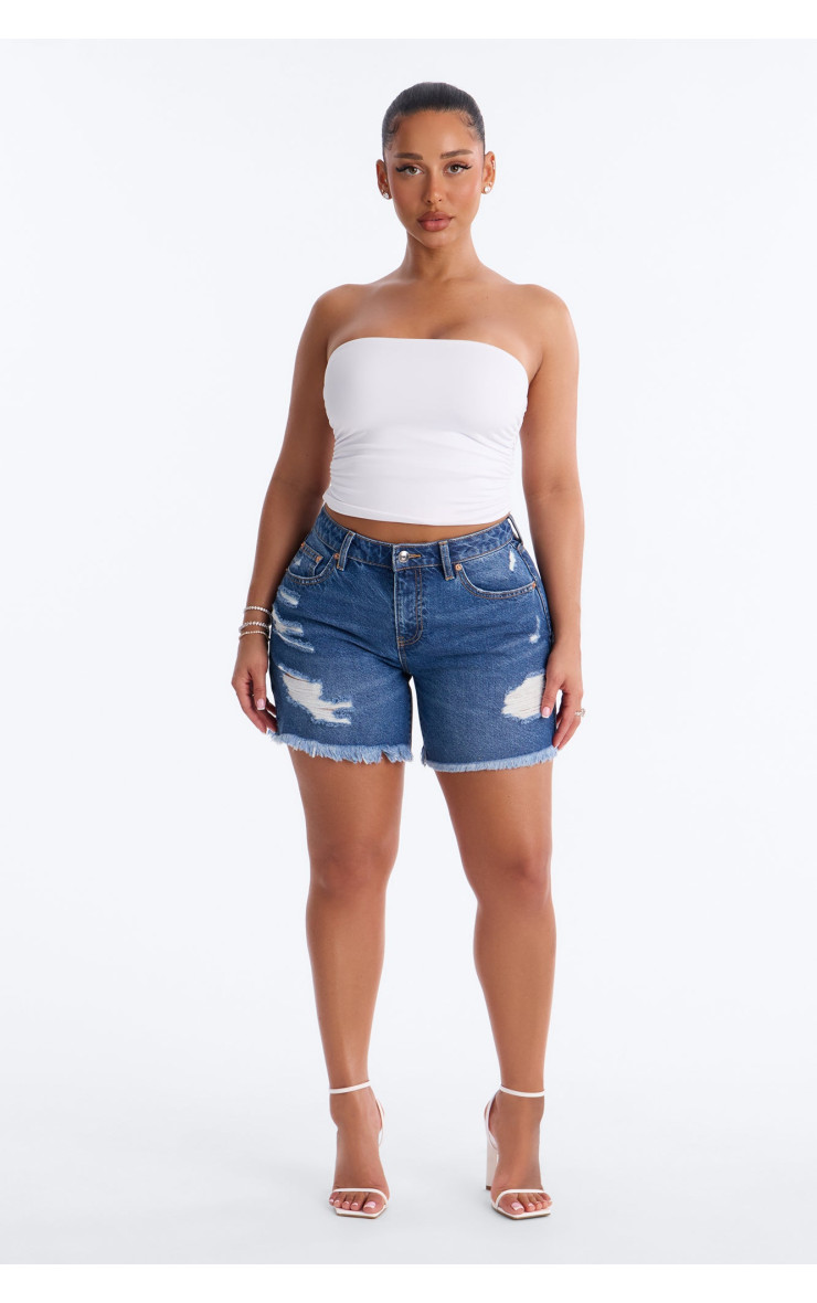 Сучасний топ-труба без бретелей, прикрашений ефектним драпіруванням. Це ідеальний вибір для створення модних і невимушених образів, що підкреслить красу плечей.