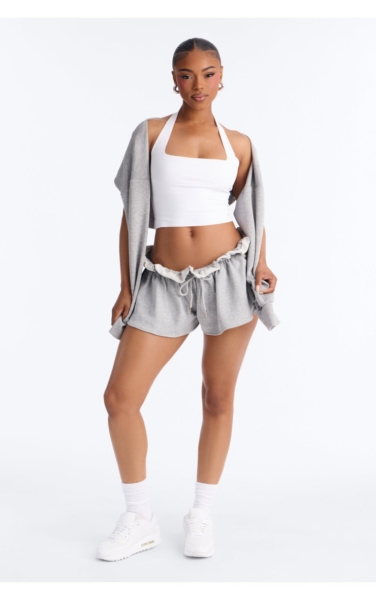 Відчуйте свободу руху з цими легкими шортами "На ходу". Низька посадка та вільний крій забезпечують максимальний комфорт, а приємний сірий меланжевий колір додає затишку. Ідеально для активного відпочинку та повсякденного носіння.