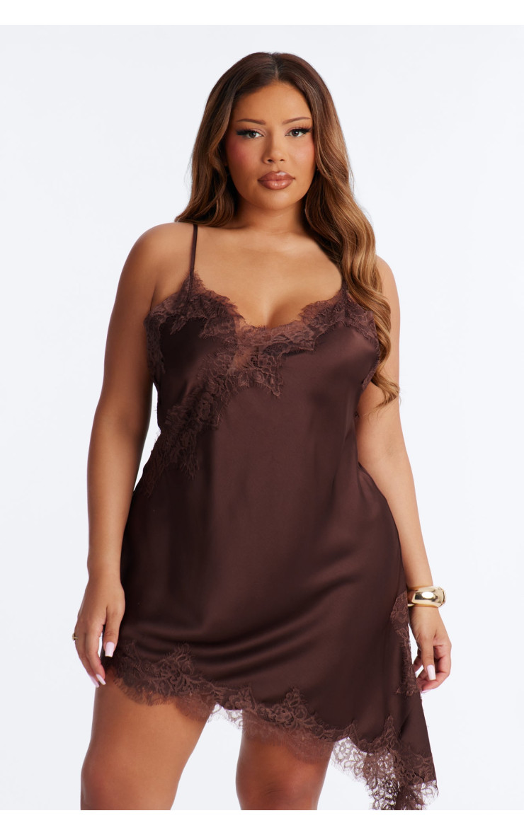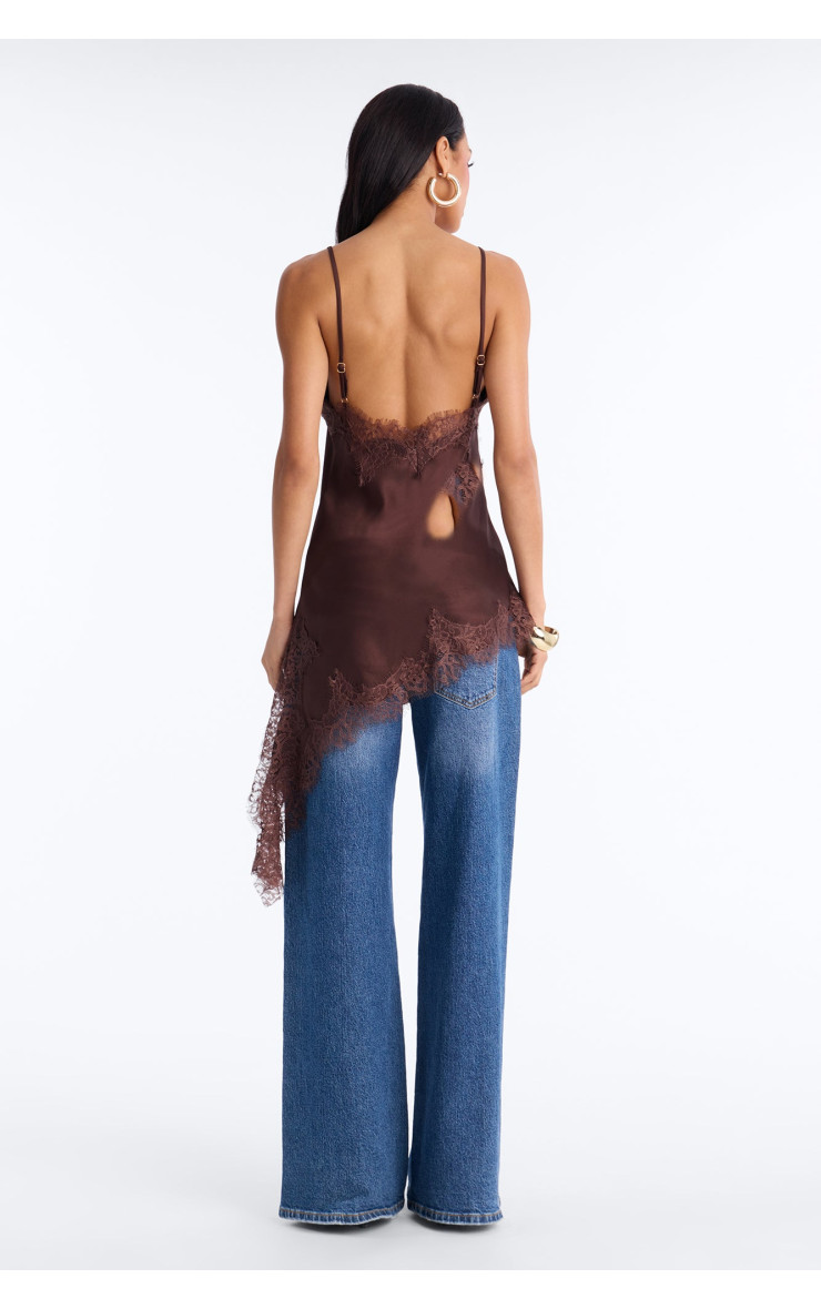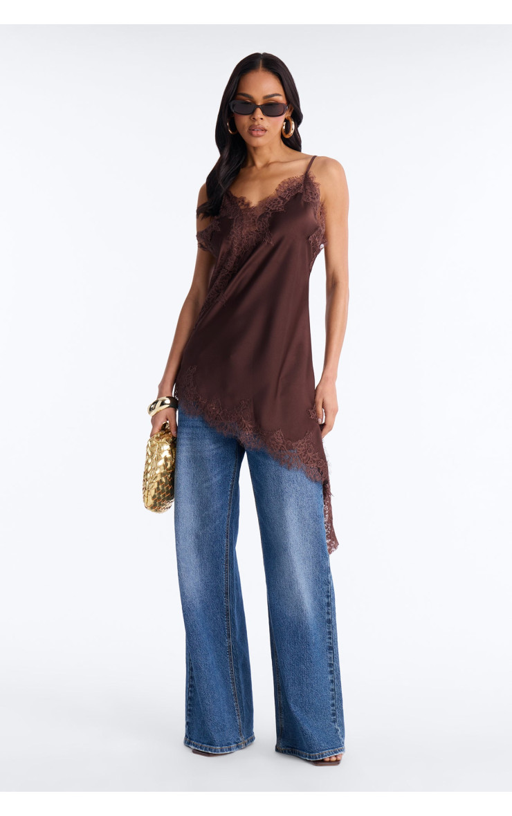 Атласний топ "Taste Of Trouble" з мереживною обробкою - Шоколадний