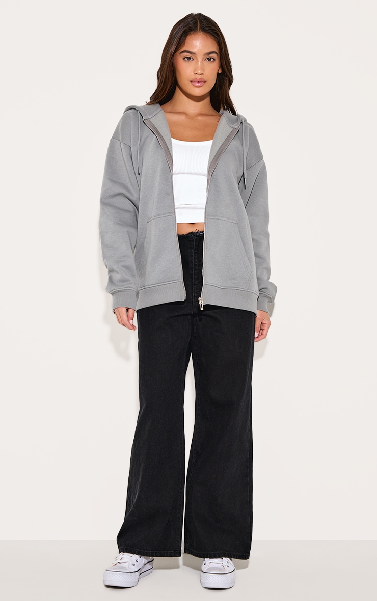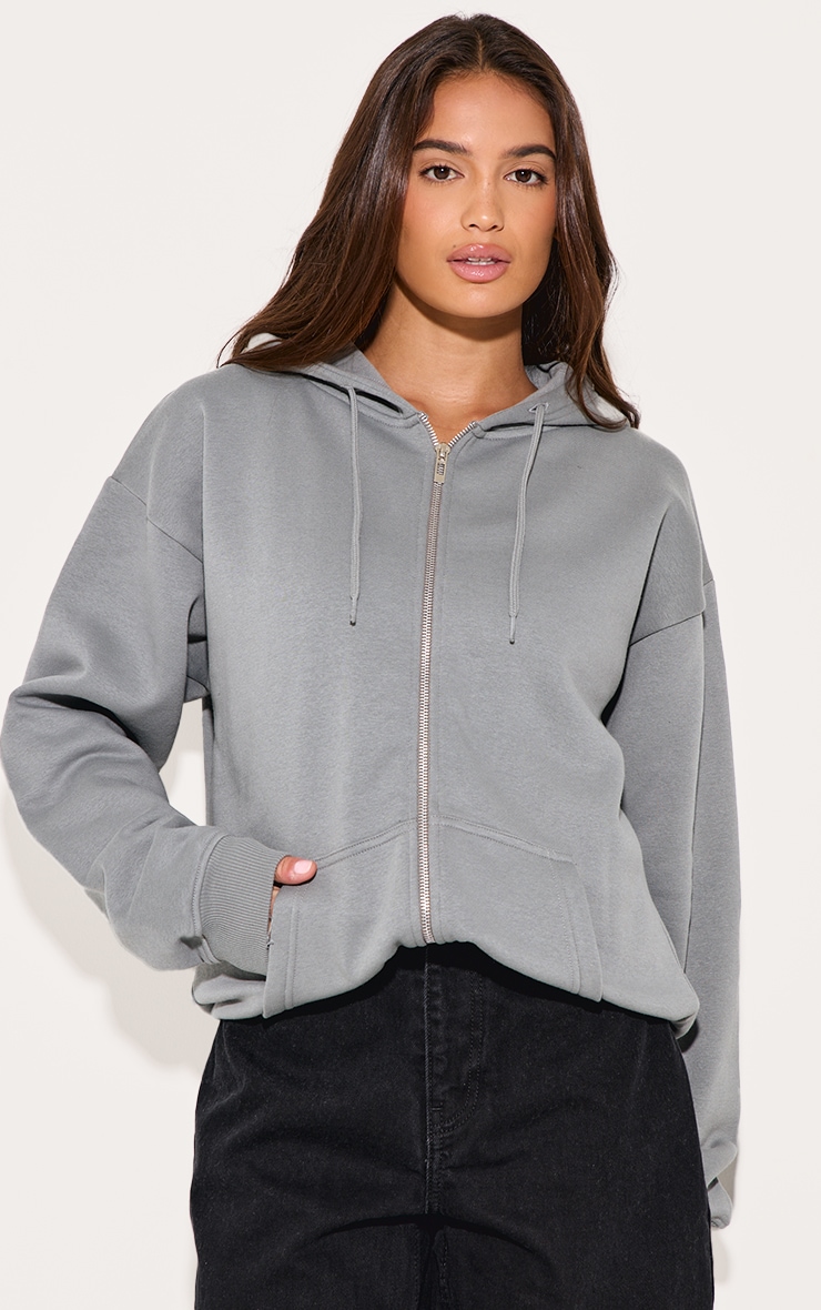 Світло -сірий негабаритний блискавок вгору простий передній балахон