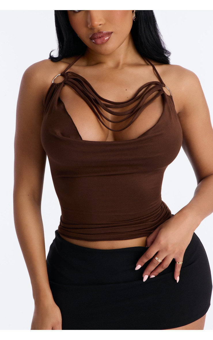 Ефектний топ "Party All Night" з розкішною бахромою, елегантним коміром-хомутом та спокусливим вирізом-халтер. Ця модель ідеально підходить для створення незабутніх вечірніх образів.