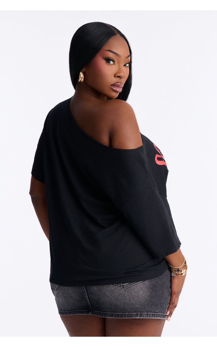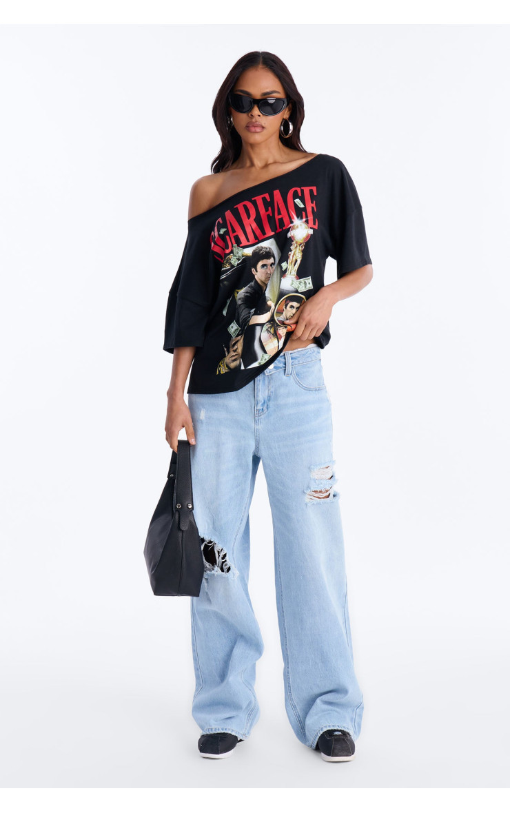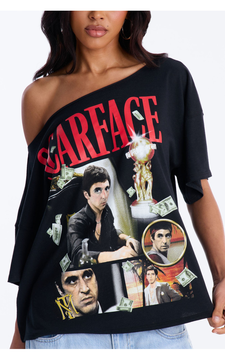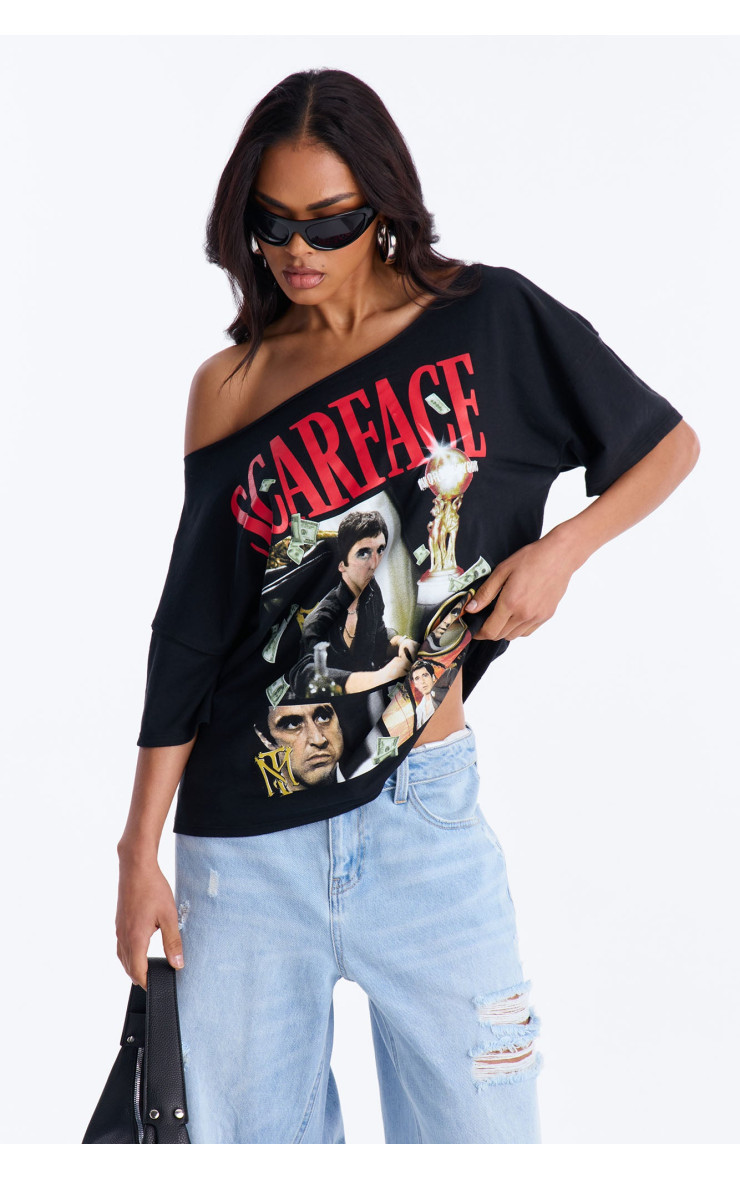 Зухвалий топ "Scarface" з ефектом відкритих плечей. Ця модель додасть вашому образу нотку бунтарства та привабливості.