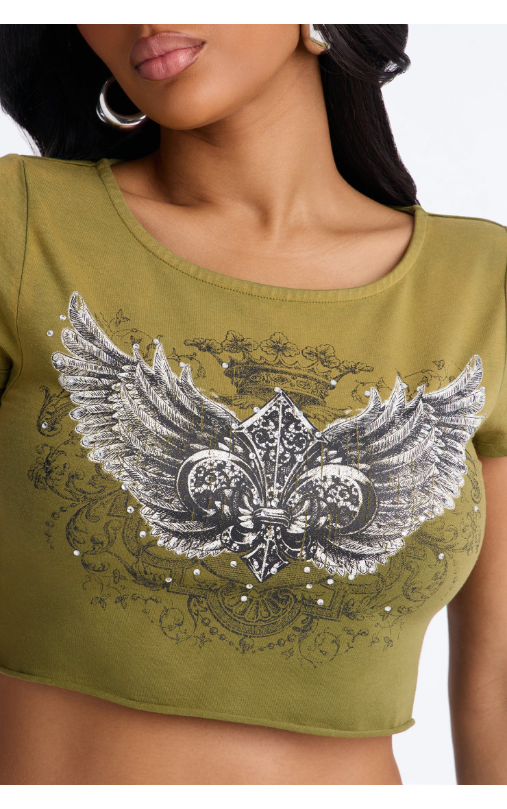 Додайте містичності вашому образу з цією укороченою футболкою "Fallen Angel". Її унікальний дизайн та комфортний крій роблять її ідеальним вибором для створення ефектних образів. Виготовлена з м'якої тканини, вона забезпечує комфорт. Покажіть свою темну сторону стильно!