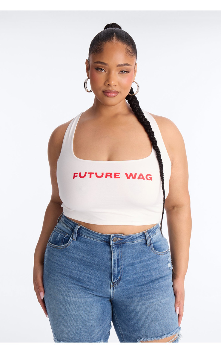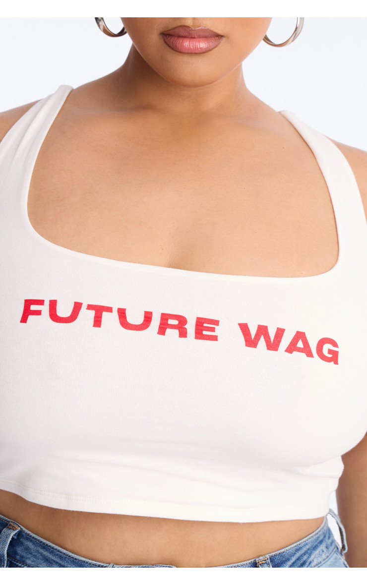 Цей модний топ "Future WAG" створений для тих, хто знає, чого хоче. Його стильний дизайн та комфортний крій роблять його ідеальним вибором для створення трендових образів. Виготовлений з приємної на дотик тканини, він забезпечить вам комфорт і впевненість протягом усього дня. Покажіть свій характер!