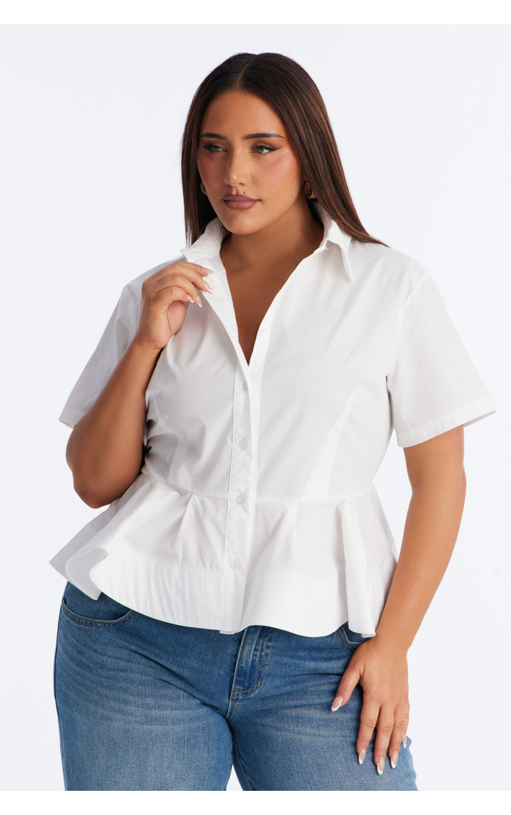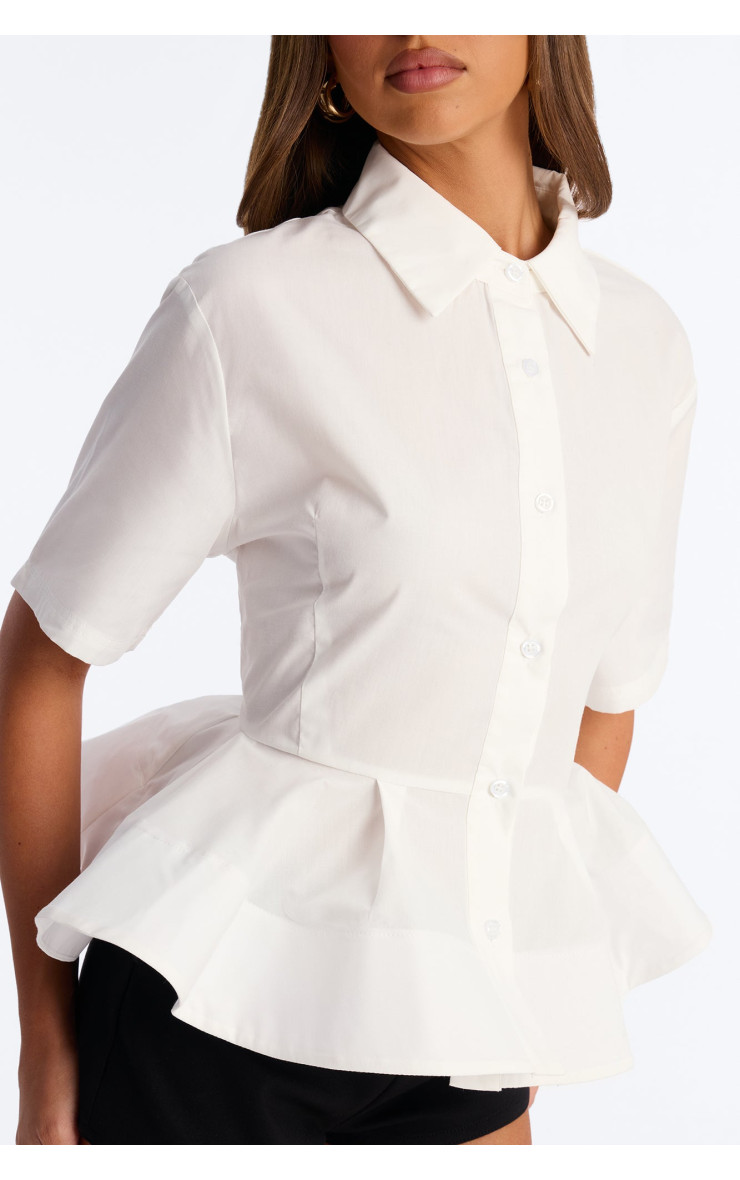 Ця класична сорочка "Classic Essentials" з елегантною баскою — втілення вишуканості та жіночності. Її чіткий крій та витончений силует роблять її незамінною частиною будь-якого гардеробу, додаючи образу елегантності та стилю.