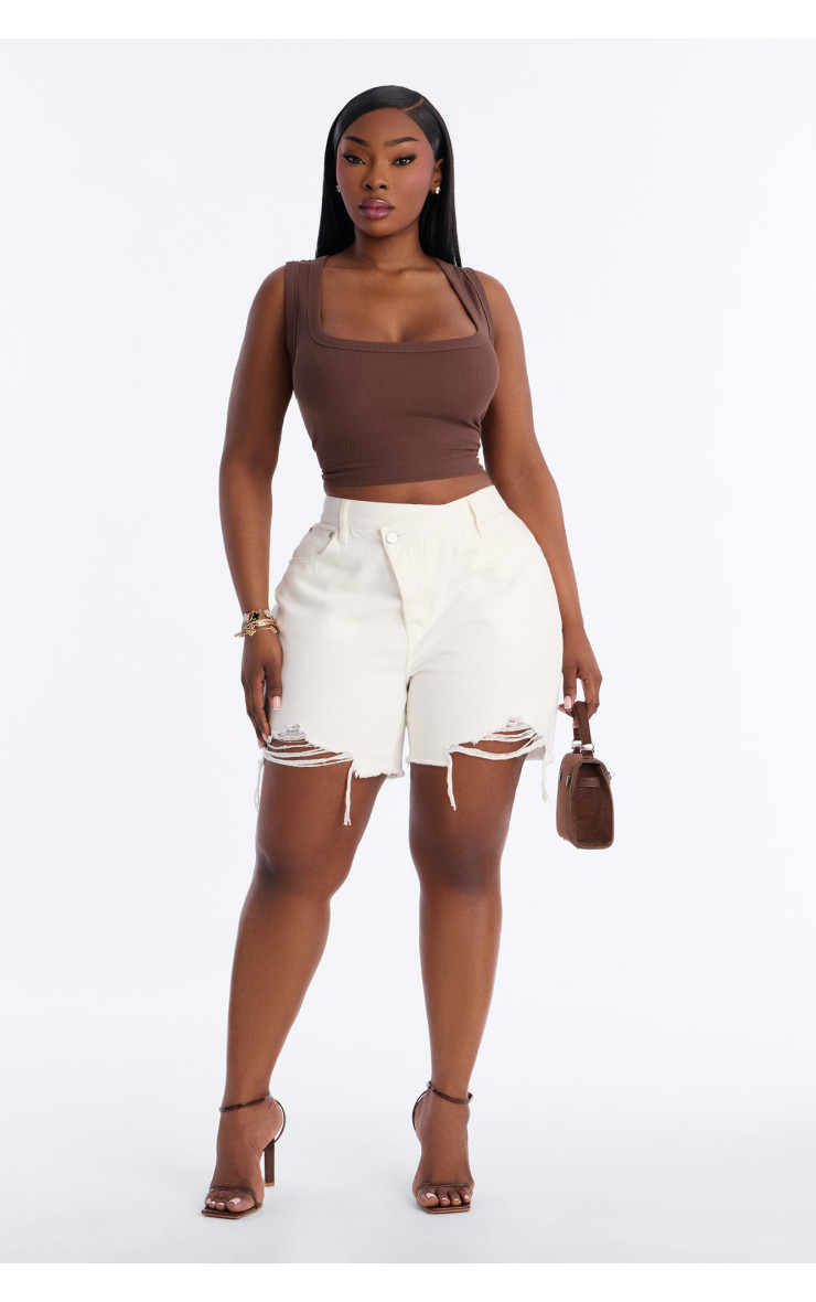 Приверніть увагу цими стильними денімними шортами "З першого погляду". Ефектний перехресний пояс та чистий білий колір створюють вишуканий образ. Ідеально для створення елегантних літніх луків.
