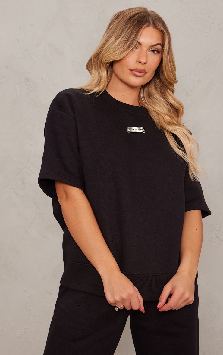 PrettyLittlething Black Detail Detail Негабаритний толстовка з короткими рукавами