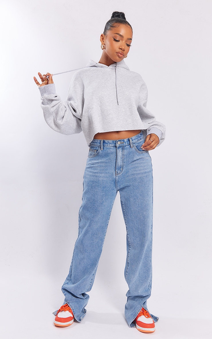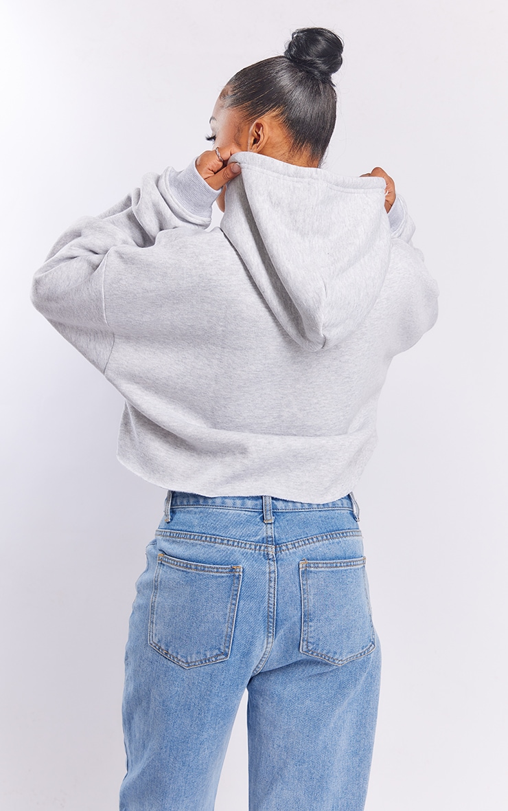 Попелясто-сіра велика укорочена толстовка з капюшоном