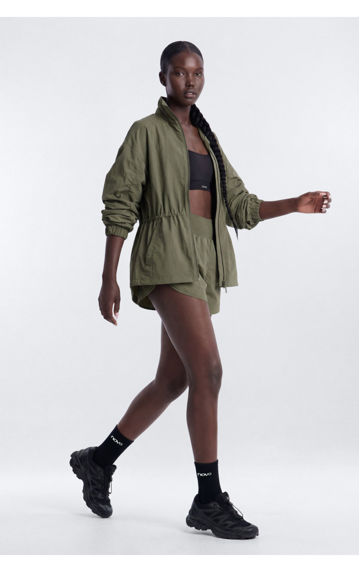 Стильна куртка "CoreNylon" з ефектним драпіруванням та зручним коміром-стійкою. Ця модель додасть вашому образу вишуканості та сучасності.