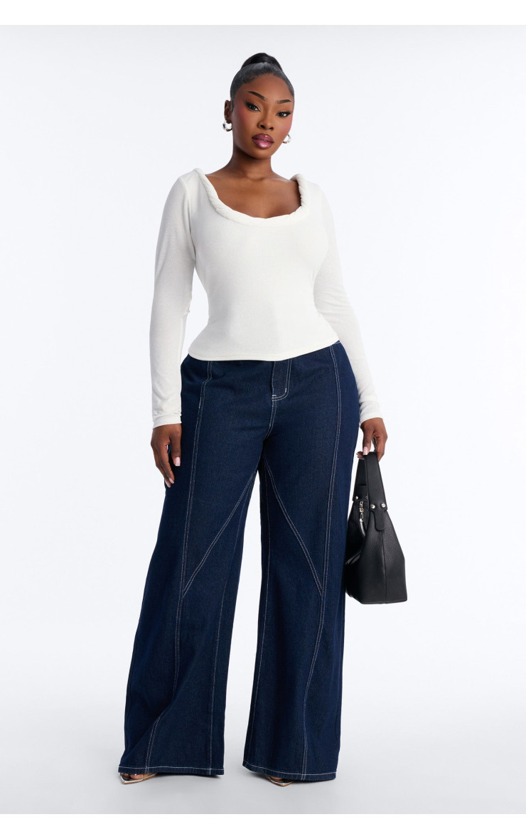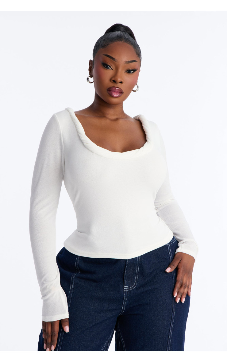 Топ "Tara" з довгим рукавом та скрученим вирізом - Білий