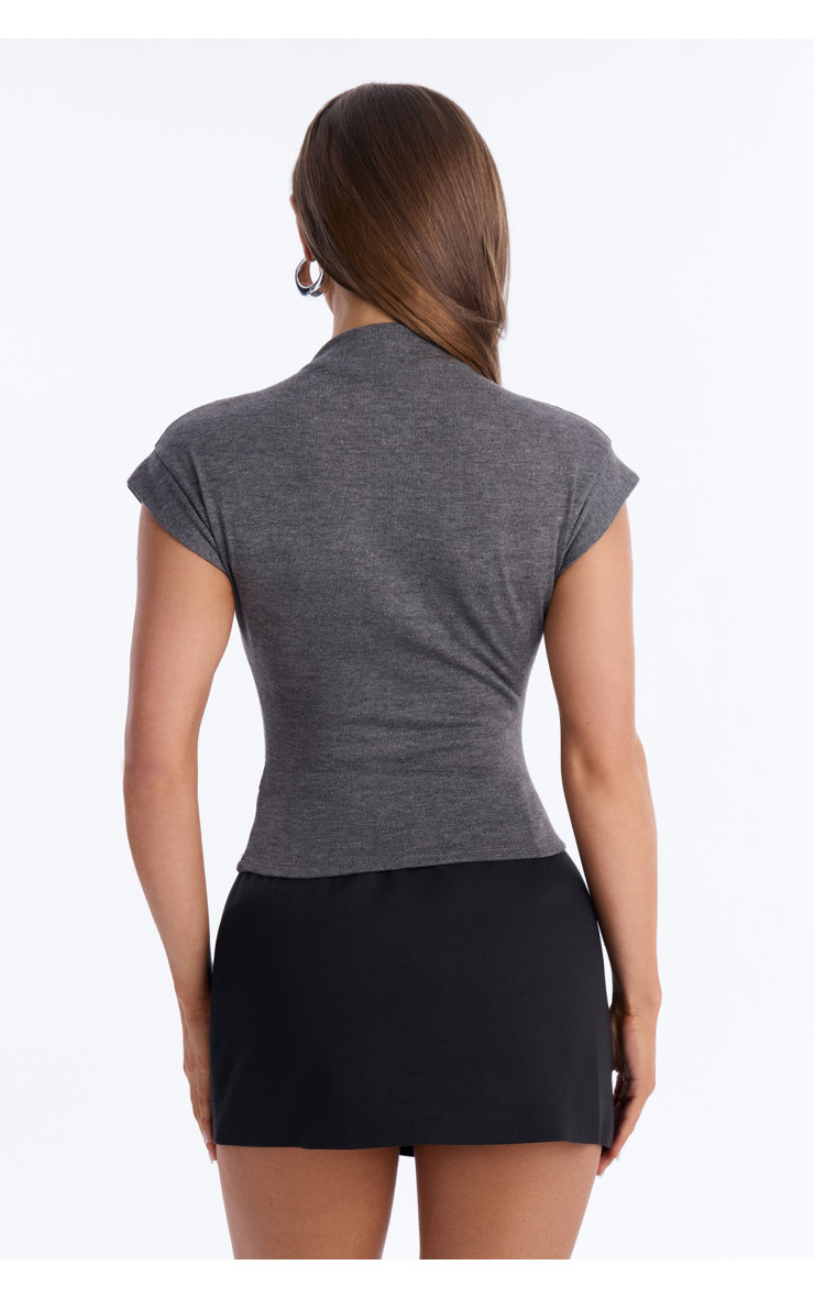 Корсетний топ "Serene Sculpt" з коміром-стійкою та коротким рукавом - Вугільний