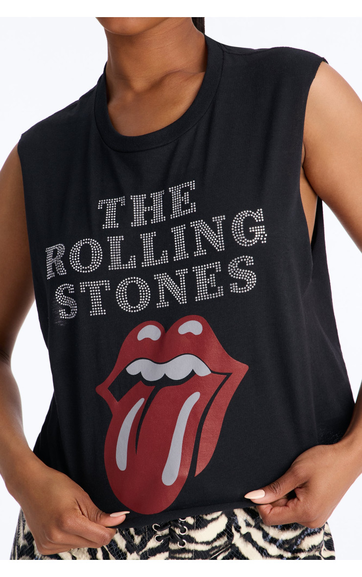 Вшануйте легенду року з цим укороченим м'язовим топом "The Rolling Stones". Прикрашений стразами, він додасть вашому образу блиску та рок-н-рольного шарму. Виготовлений з м'якої тканини, цей топ забезпечує комфорт. Ідеальний вибір для справжніх шанувальників музики.