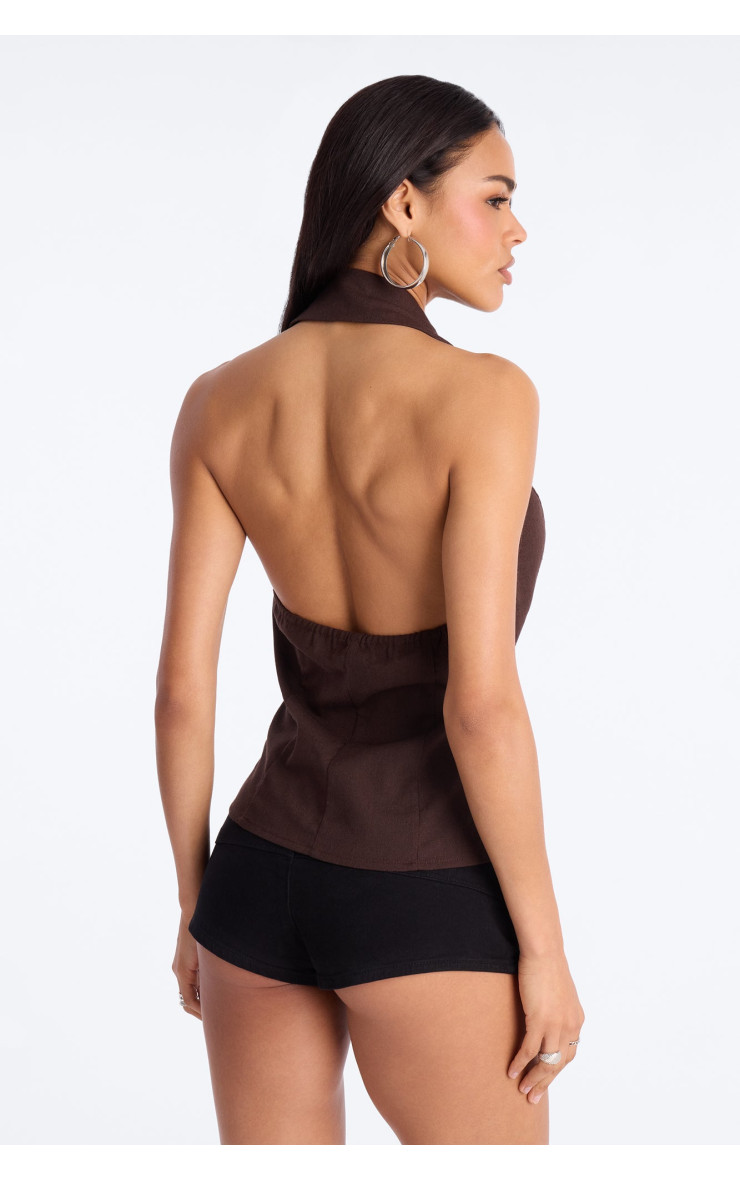 Легкий лляний топ "Flash On" з вишуканим вирізом-халтер. Ця модель ідеально підійде для створення невимушених літніх образів, що випромінюють стиль.