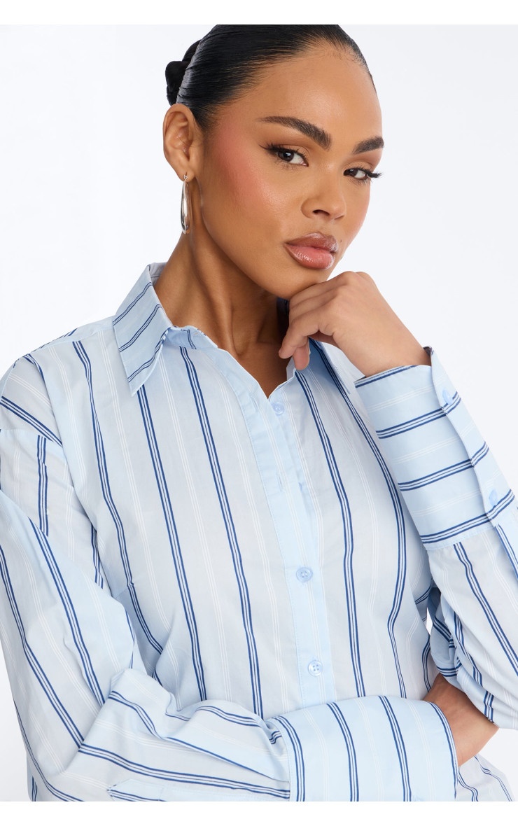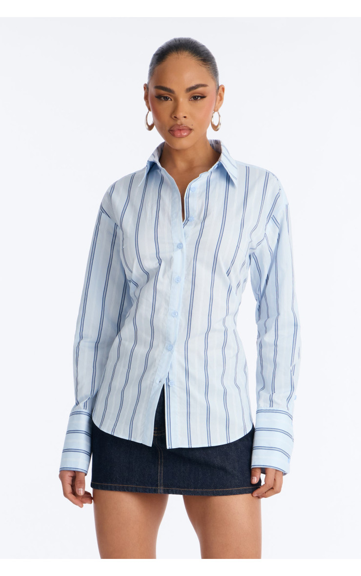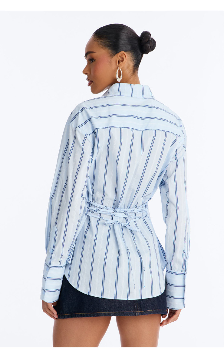 Смугаста сорочка "Silent Flex" зі шнурівкою - Синій/Комбі