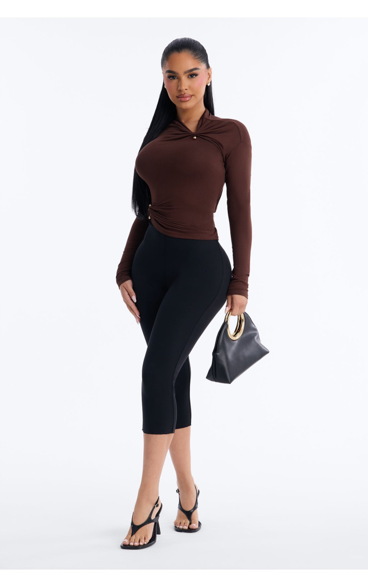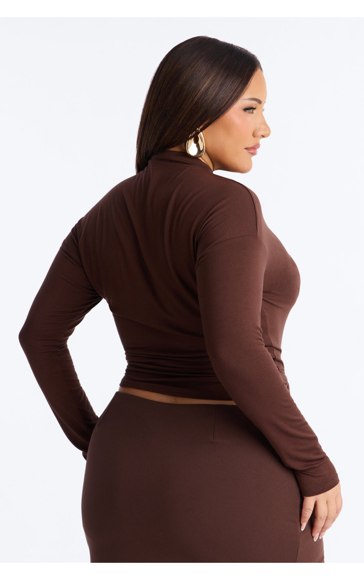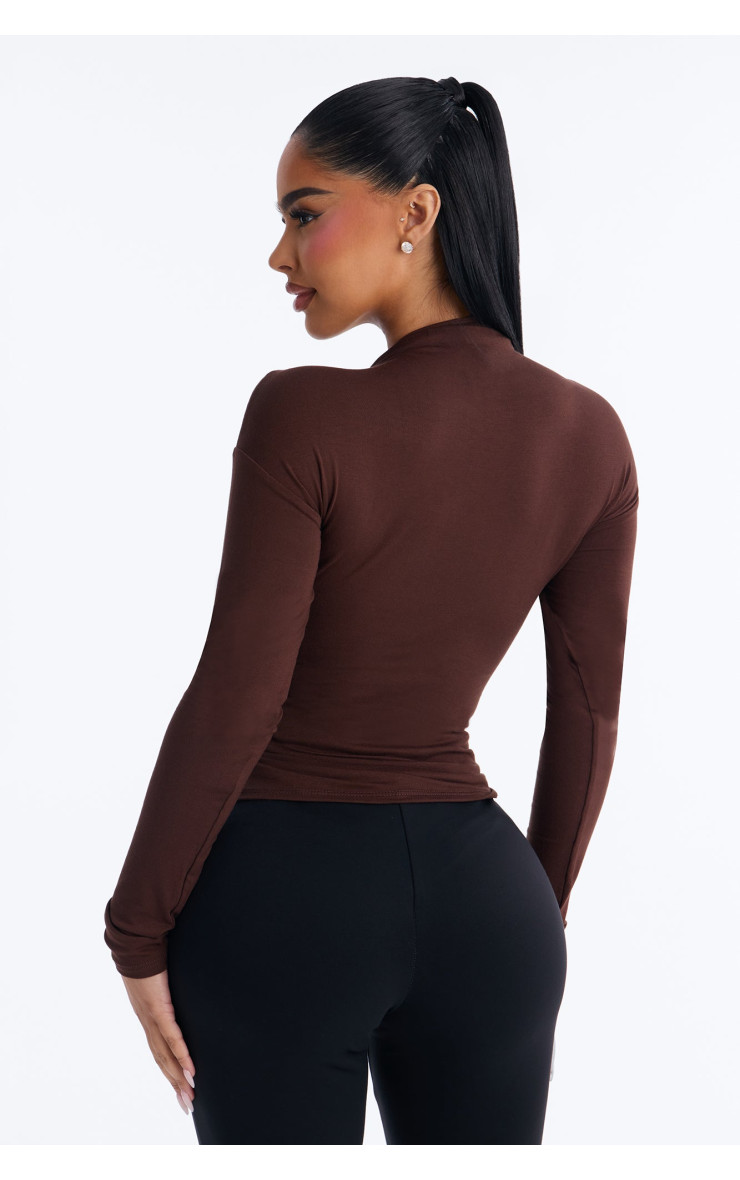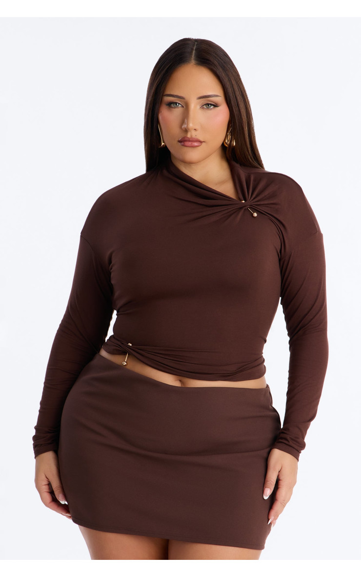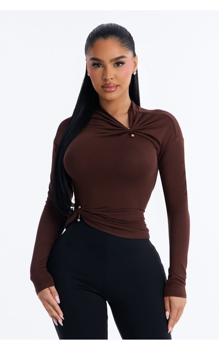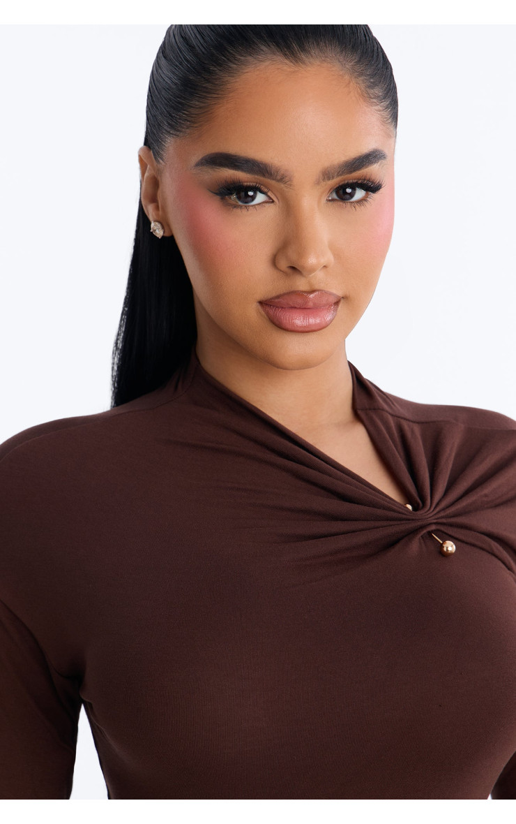 Топ "Pin Me" з асиметричним вирізом та довгим рукавом - Коричневий