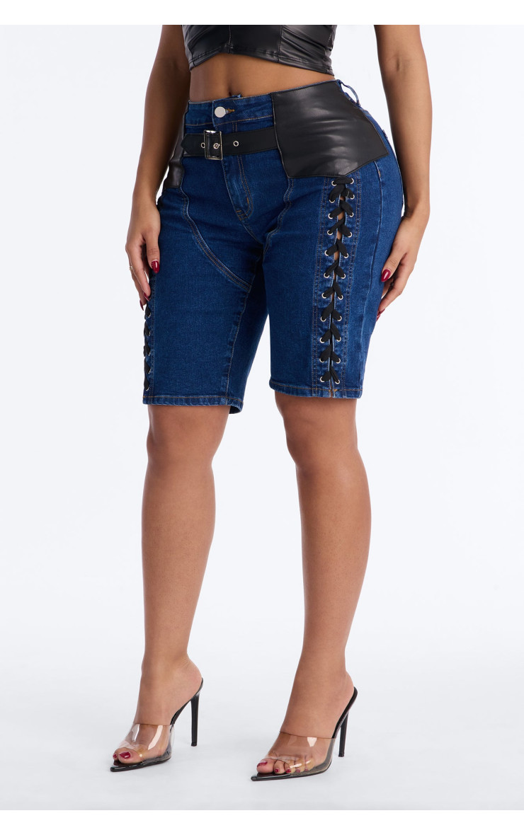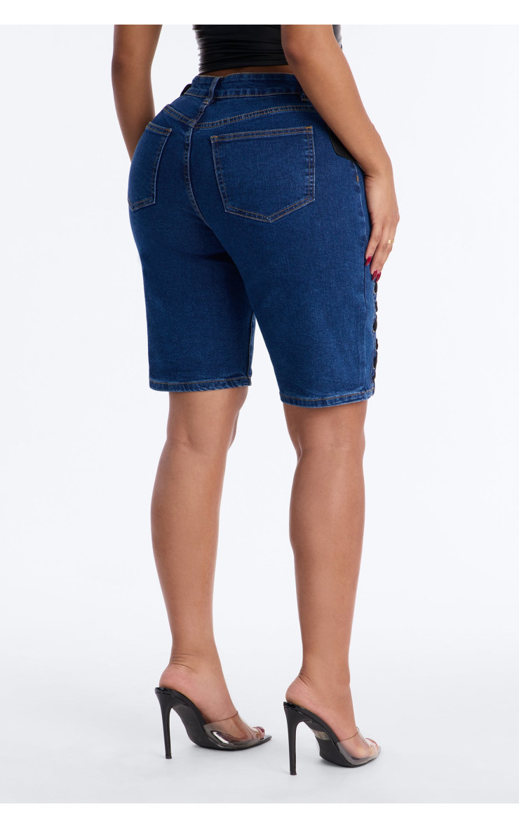 Денімні бермуди "Шоу-стоппер" з шнурівкою - Темний відтінок