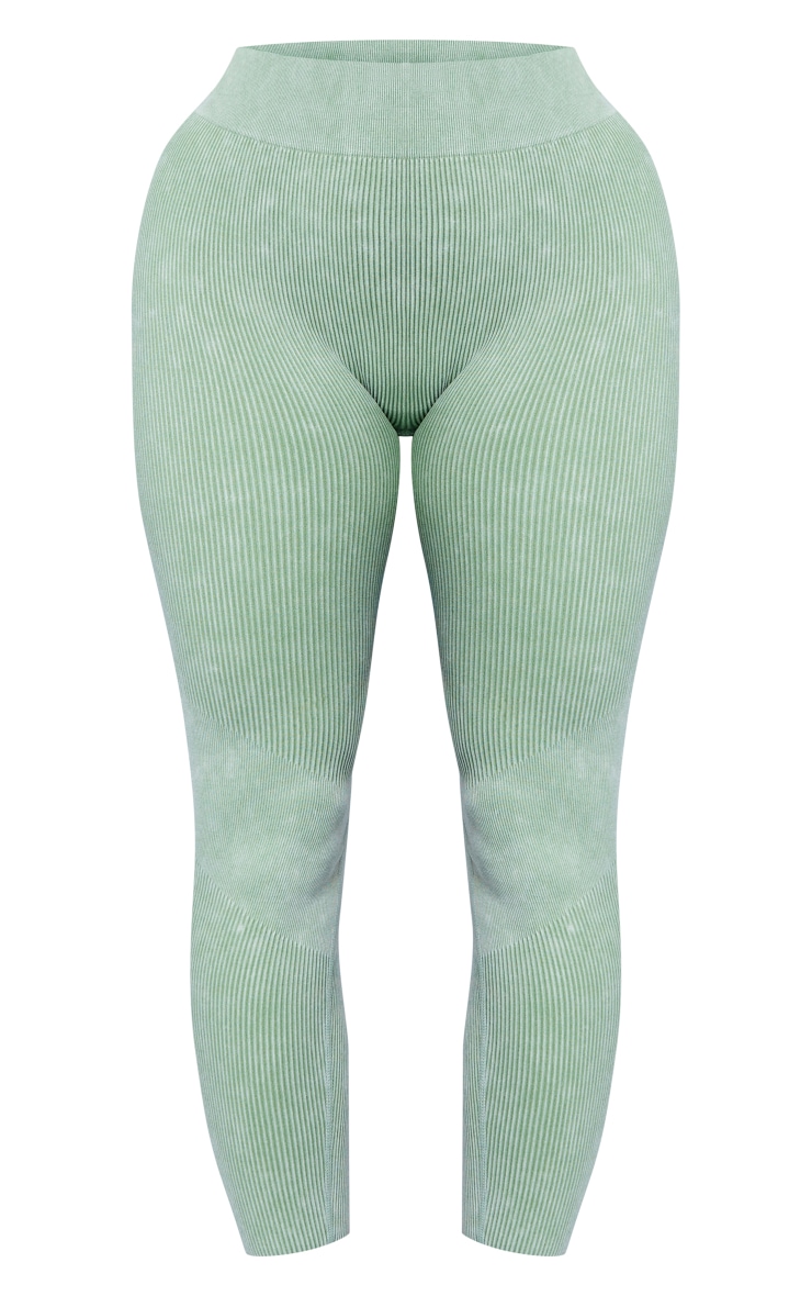 Спортивні легінси з високою талією і безшовними рубчиками кольору хакі