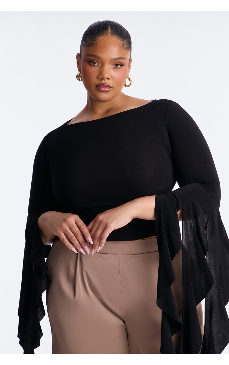 Топ "Isabella" з вирізом-човником та воланами - Чорний