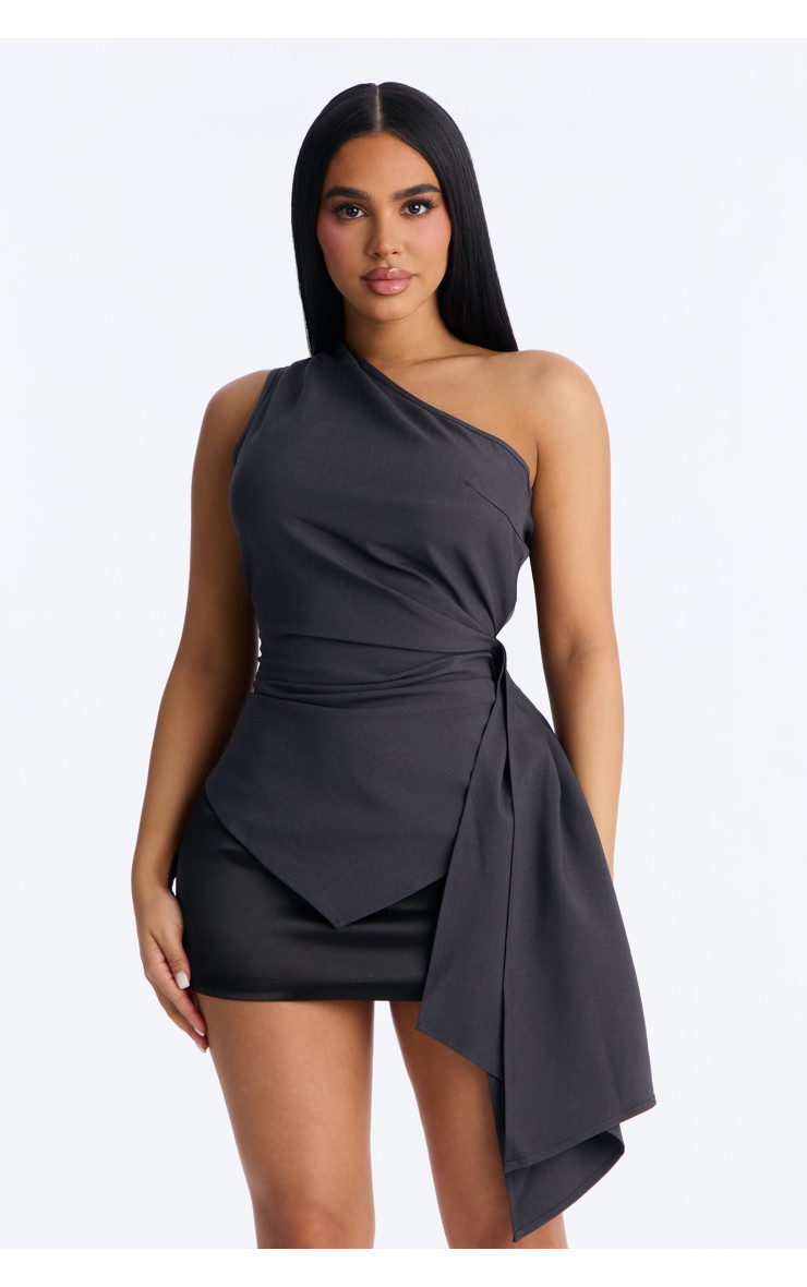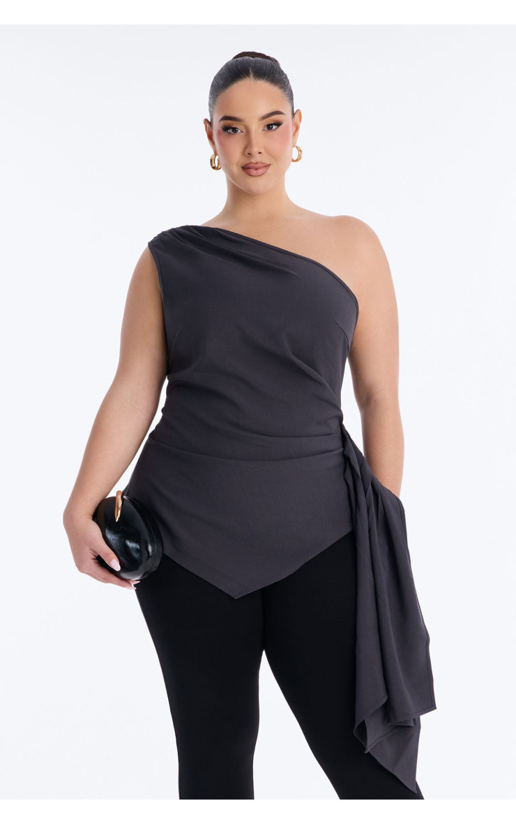 Топ "Muse In Motion" з одним плечем та драпіруванням - Вугільний