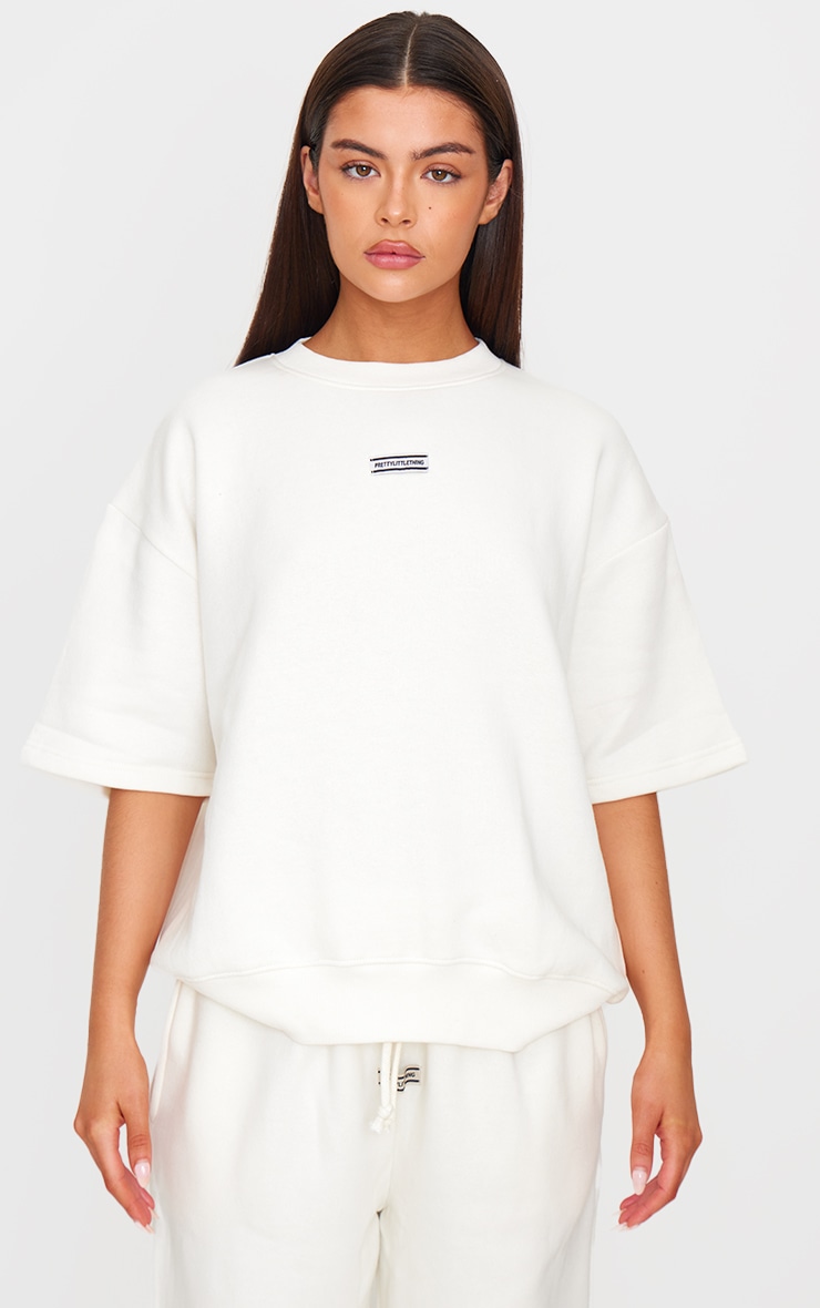 Великий світшот з короткими рукавами PRETTYLITTLETHING кремового кольору