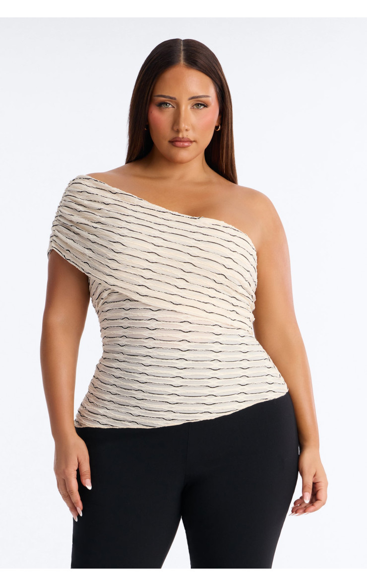 Топ "Amaya" з текстурою та одним плечем - Айворі/Комбі