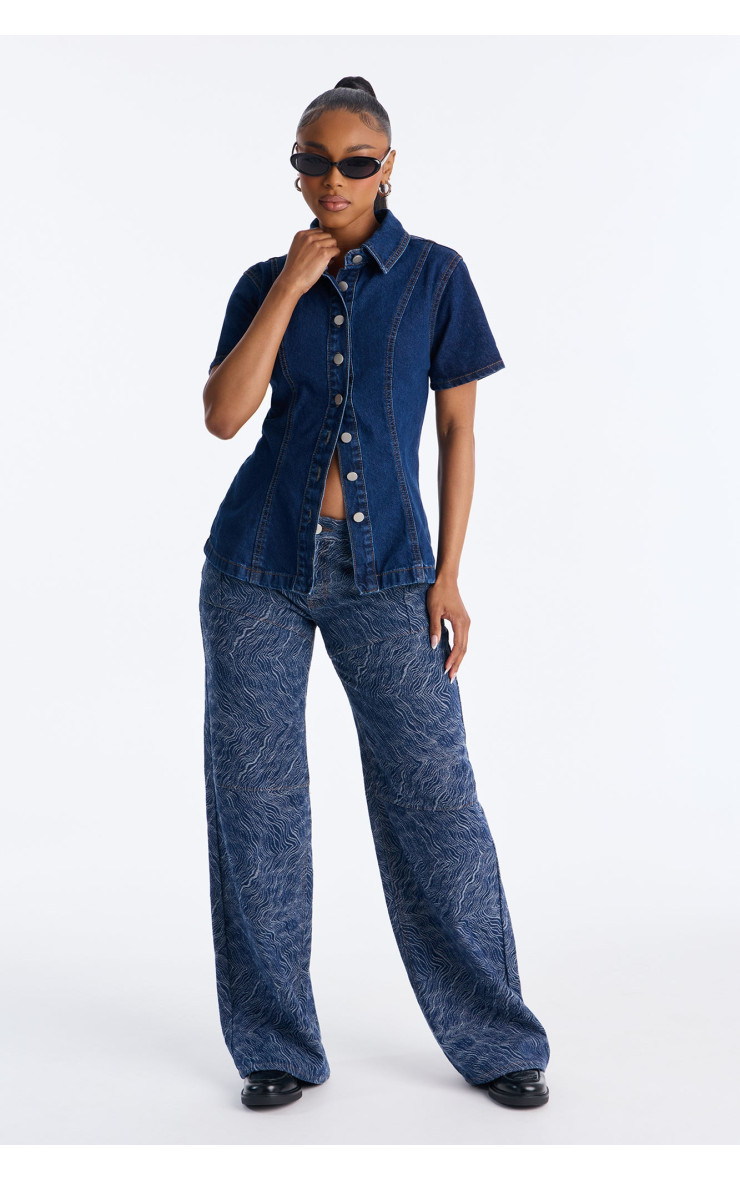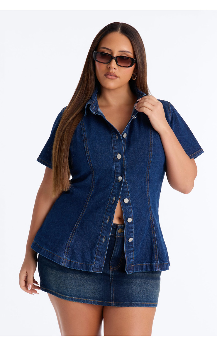 Ця денім сорочка "Nina" з ефектною затяжкою на талії підкреслить вашу фігуру та додасть образу вишуканості. Її класичний дизайн та приваблива деталь роблять її універсальним елементом гардеробу, який легко поєднується з різними низами.