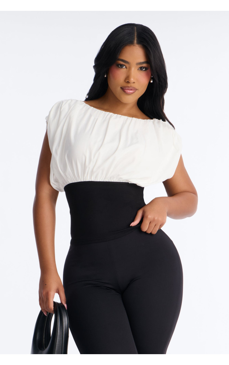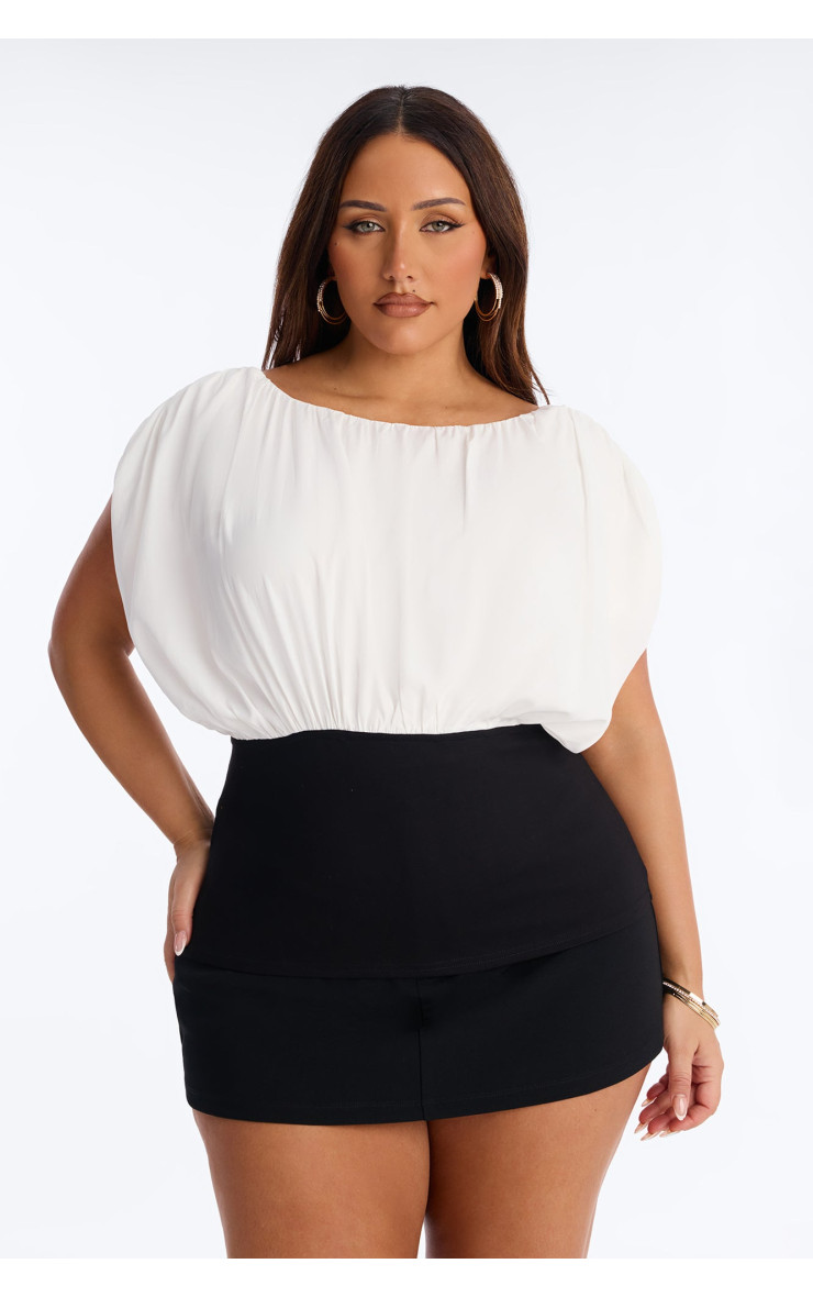 Топ "Camera Loves Me" з контрастним драпіруванням - Чорний/Білий