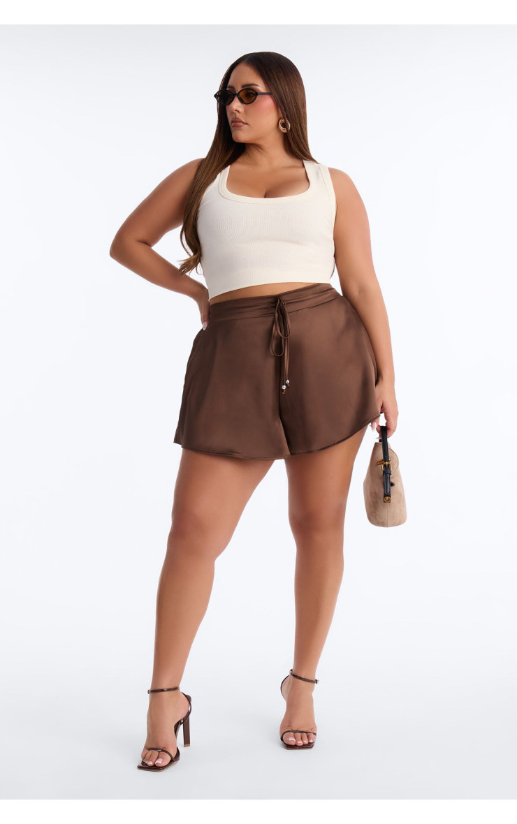 Шовкові шорти "Елсі" з пишним подолом - Шоколад