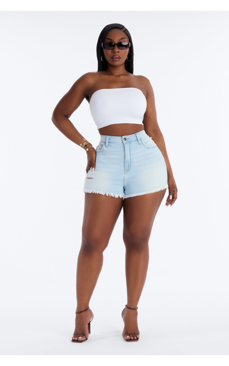 Створіть свій унікальний образ з цими еластичними денімними шортами "На ваш розсуд". Відрізний край та комфортний світло-блакитний відтінок роблять їх ідеальним вибором для літнього гардеробу. Гнучкість та стиль для будь-якого випадку.